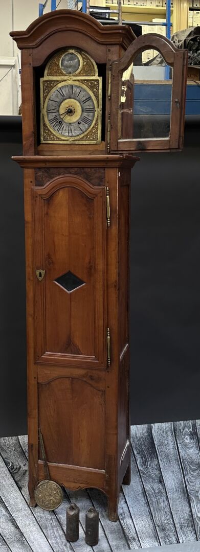 Horloge de parquet à la caisse en bois fruitier, le placage de ronce, la partie basse ouvrant à...