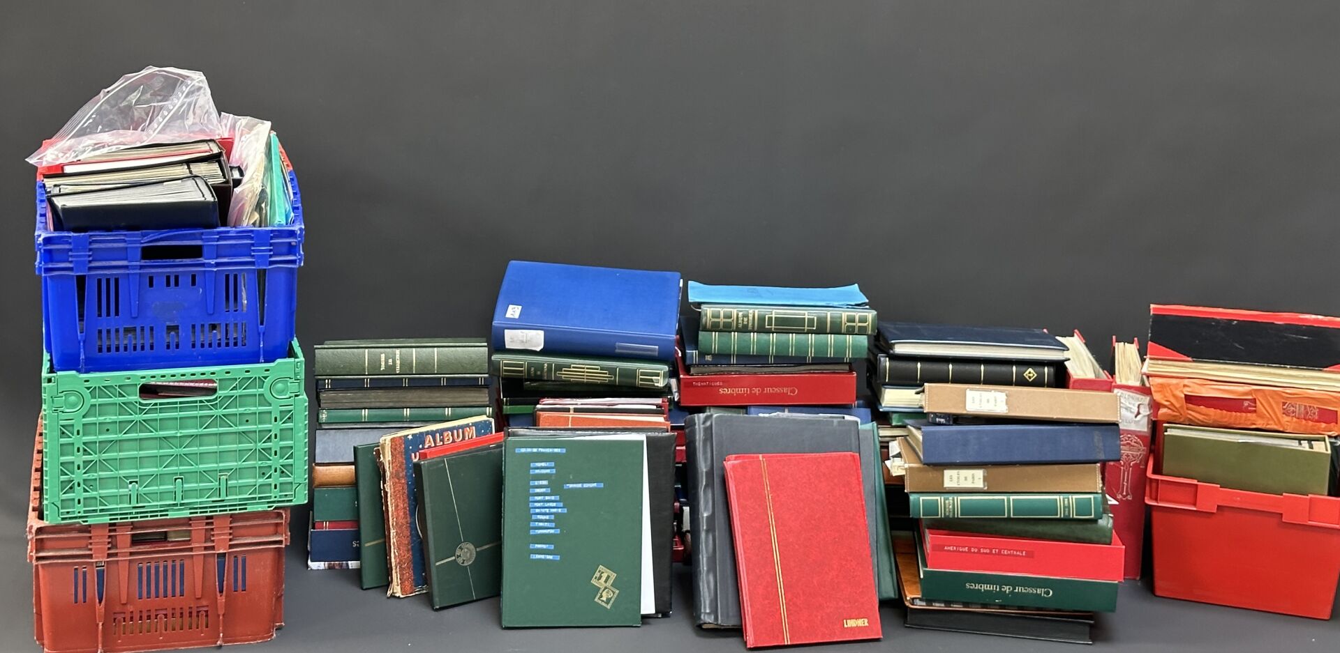 Fort ensemble (environ 130 albums) de timbres France et Monde, enveloppes premiers jours.