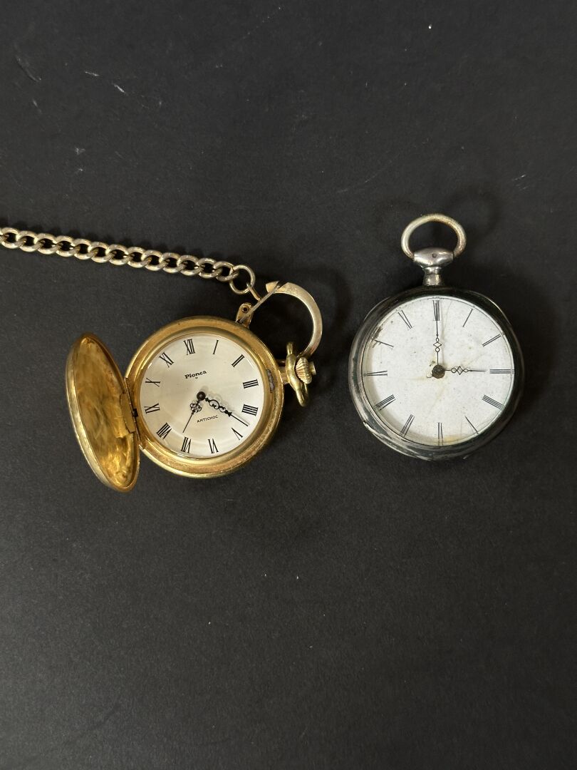Réunion de deux montres de gousset, l’une en métal doré et la seconde en métal...