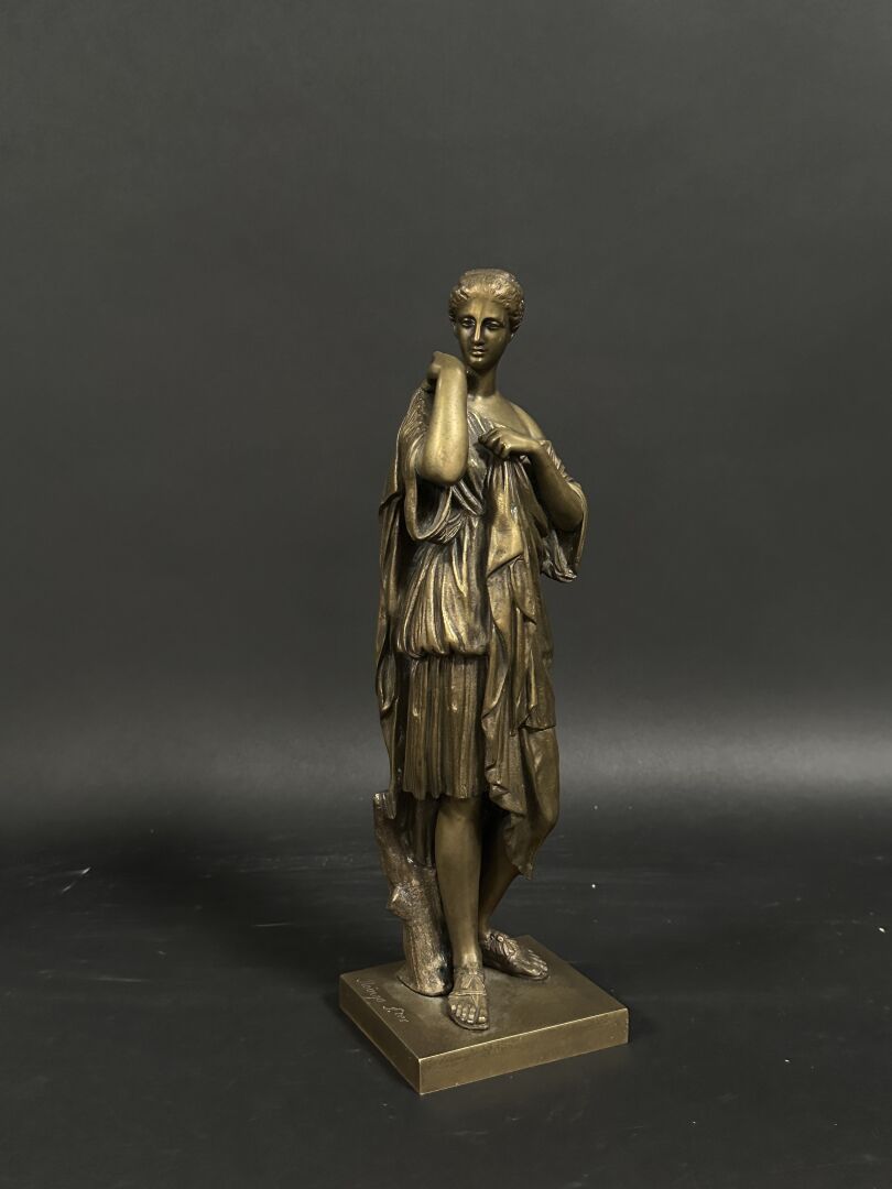 Statuette figurant la Diane de GABIES en bronze ciselé, anciennement patiné, signée sur la...