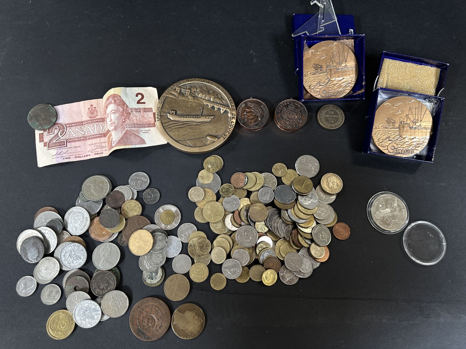 Ensemble de médailles en bronze ou métal dont « Union des usagers des voies navigables de...