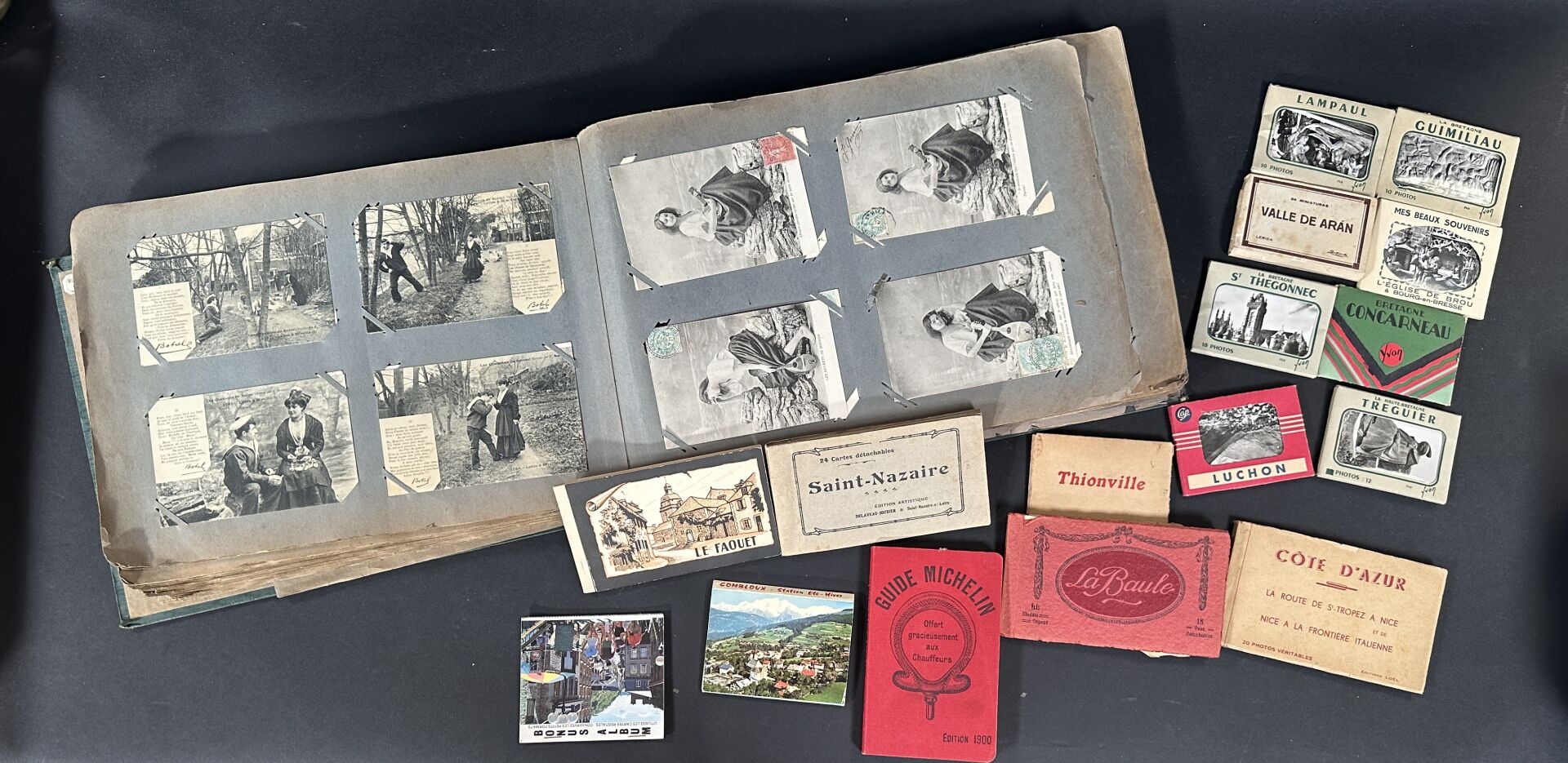 Réunion d’un album de cartes postales notamment régionalisme et environ quinze carnets de...