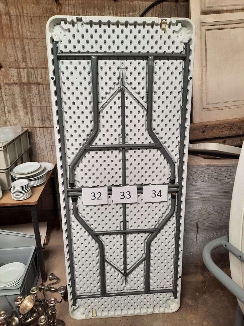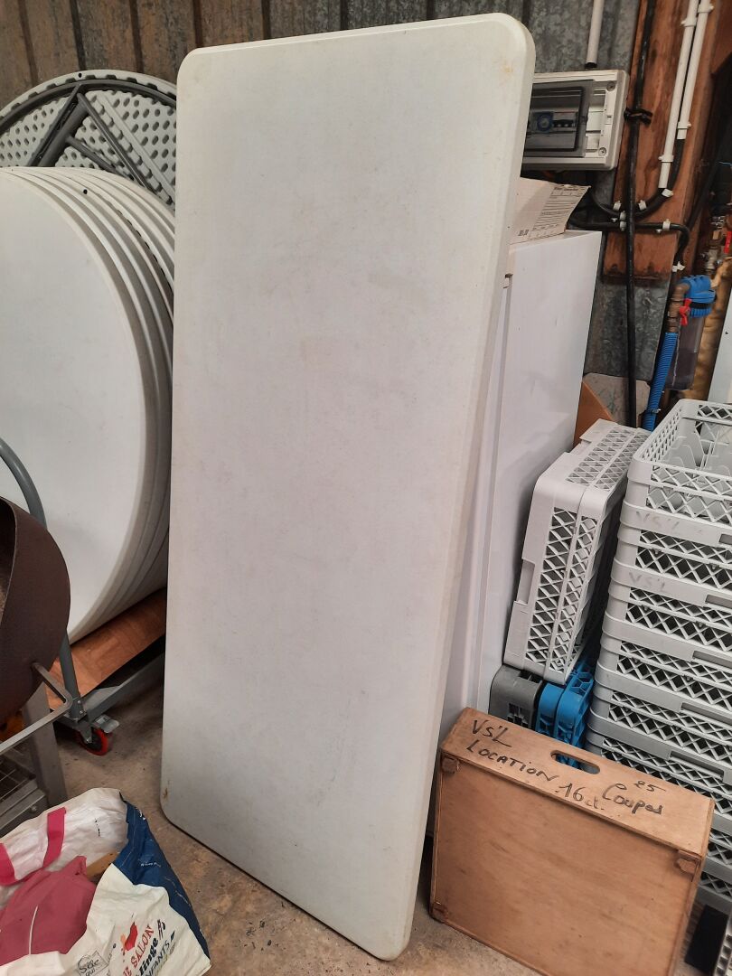 5 tables pliantes rectangulaires (183x75 cm) en métal laqué gris et PVC gris