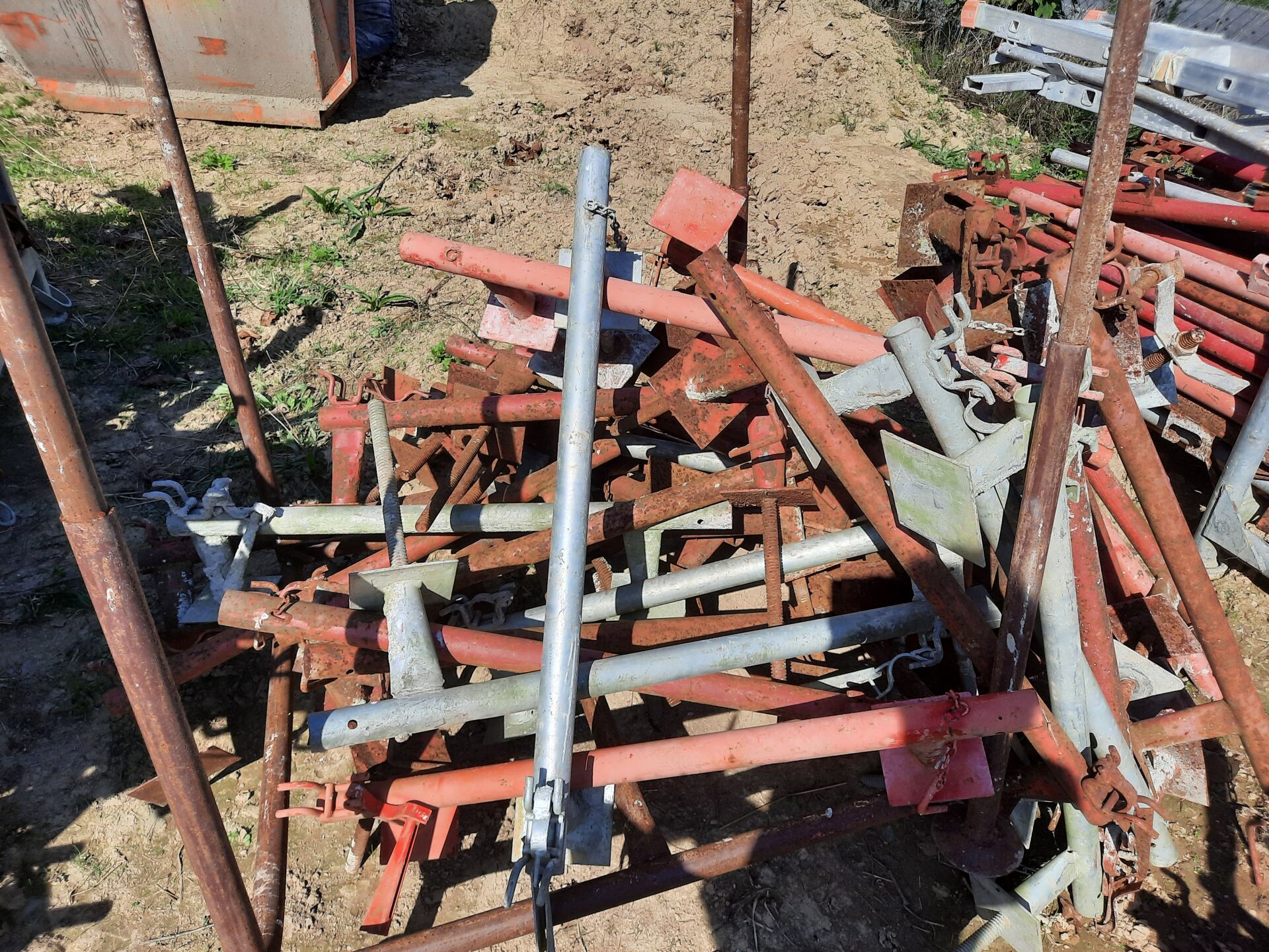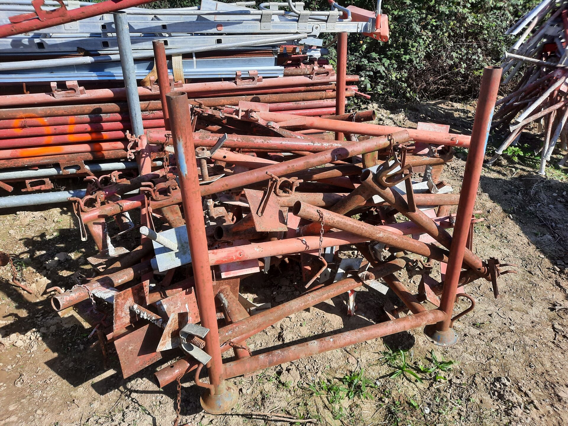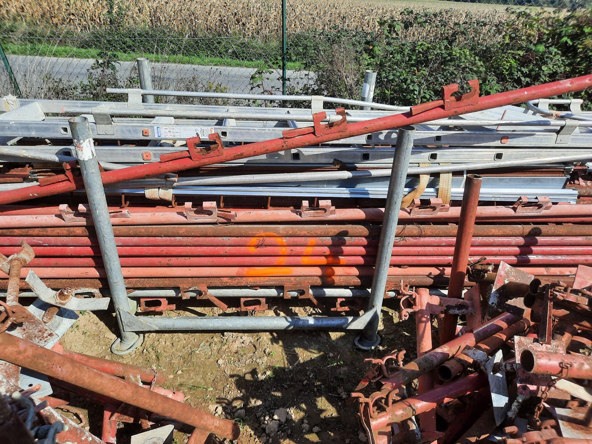 Eléments de garde-corps périphériques à bloqueur comprenant environ 100 montants (dans un panier) et environ 60 éléments de départ (répartis dans 2 paniers)