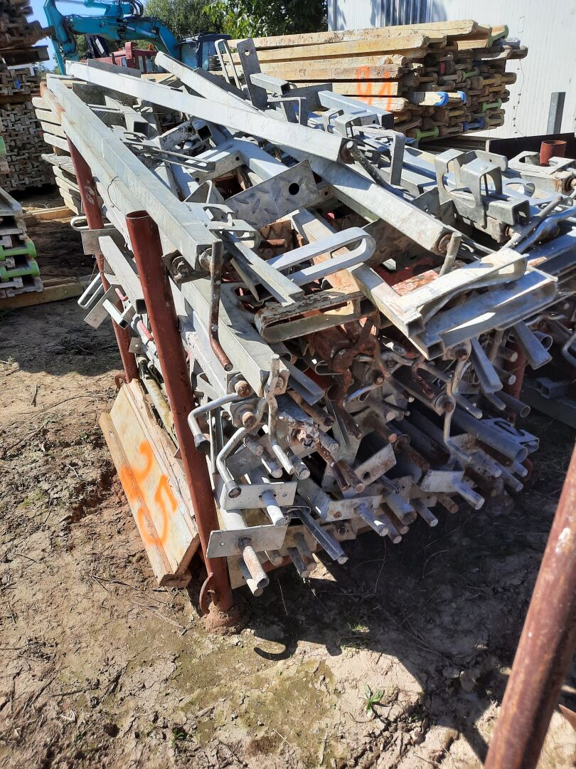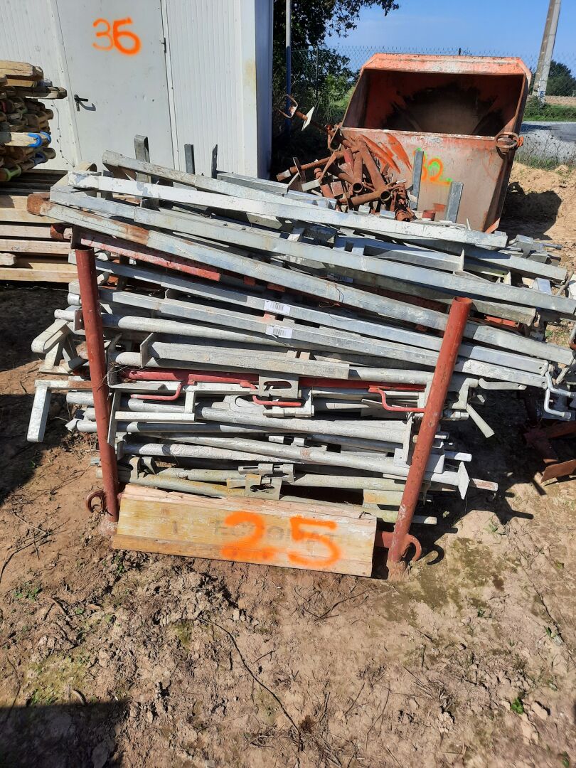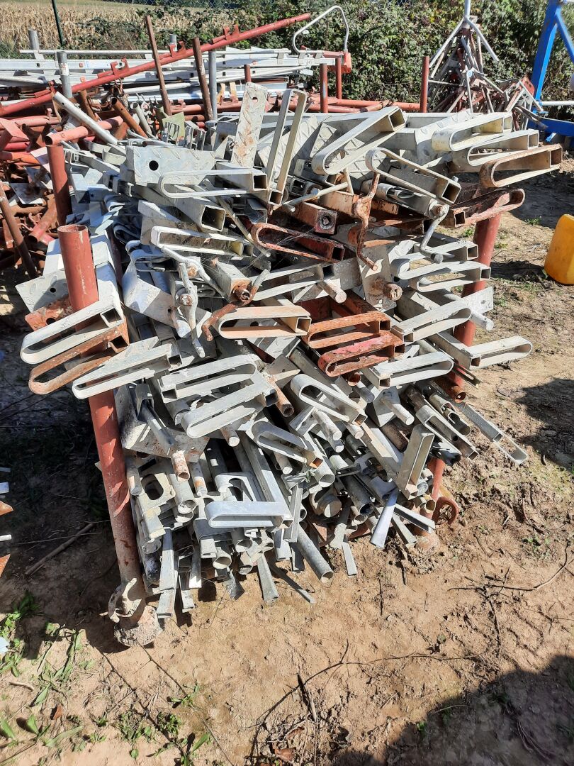 Environ 100 éléments de garde-corps dont pinces dalles, potelets et éléments de départ, répartis dans trois paniers