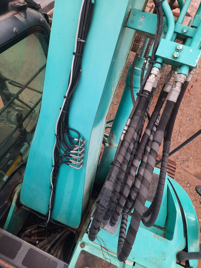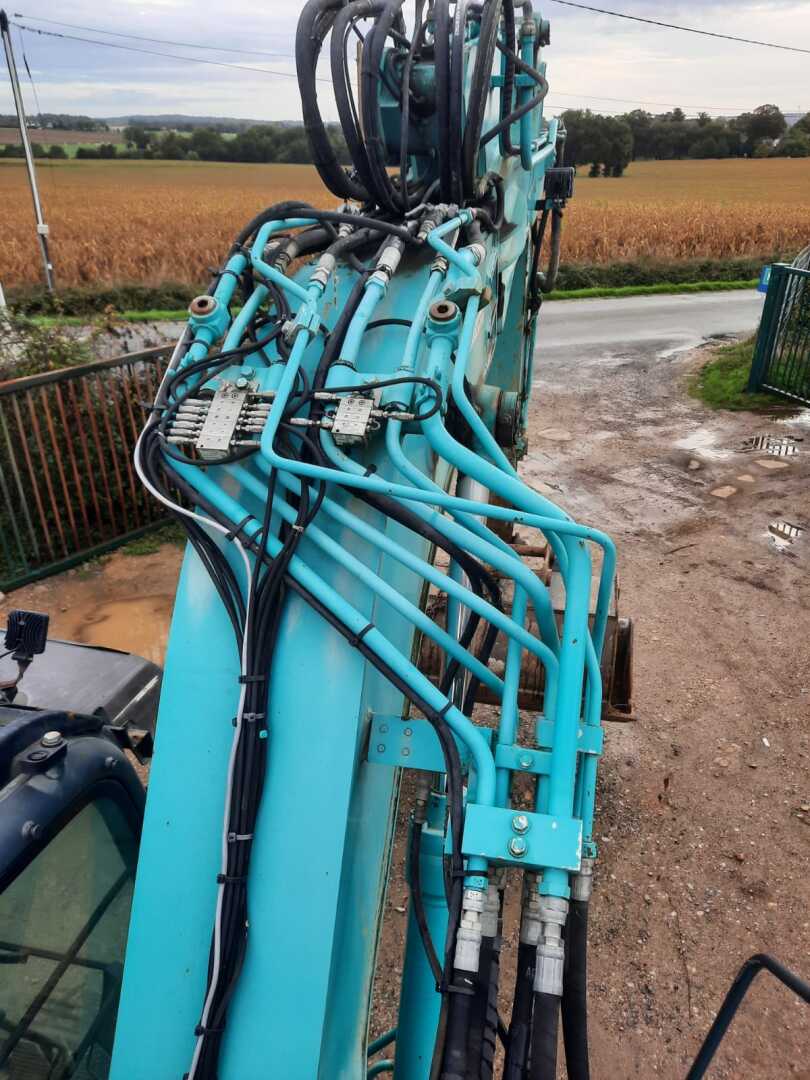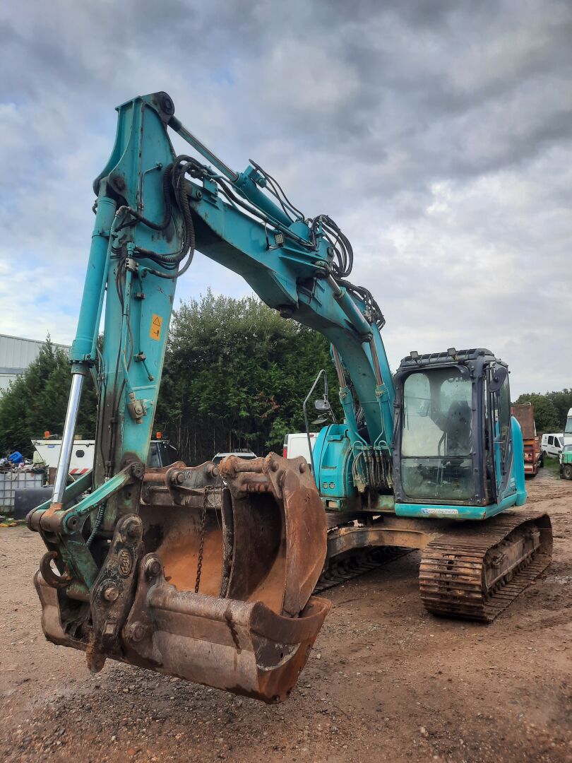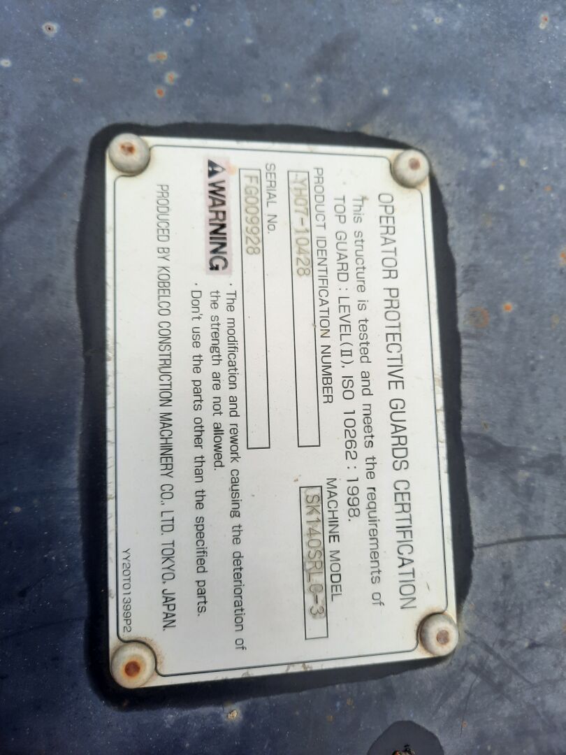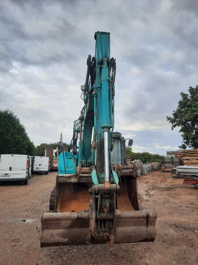 Pelle mécanique sur chenilles KOBELCO SK 140 SRLC-3, TP EQUIPEMENT, poids 14 T, de 2015 (2016) mode dégradé, problème de vanne EGR et/ou FAP Flèche à volet variable, attache automatique GEITH NS : YH 07-10428 - Code certification : 521400499270 Compteur : 5 769.8 heures Avec : 3 godets GEITH l'un 450, l'autre 1200 et curage 1800 Film sur demande