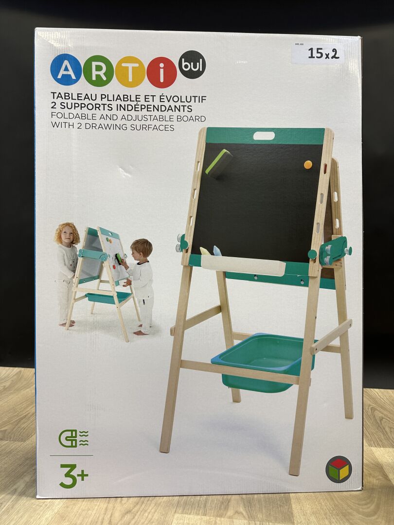 OXYBUL - Réunion de : - Artibul tableau pliable et évolutif à partir de 3 ans; - Explorbul table sable et eau, à partir de 18 mois. EXPEDITION POSSIBLE (sur devis).