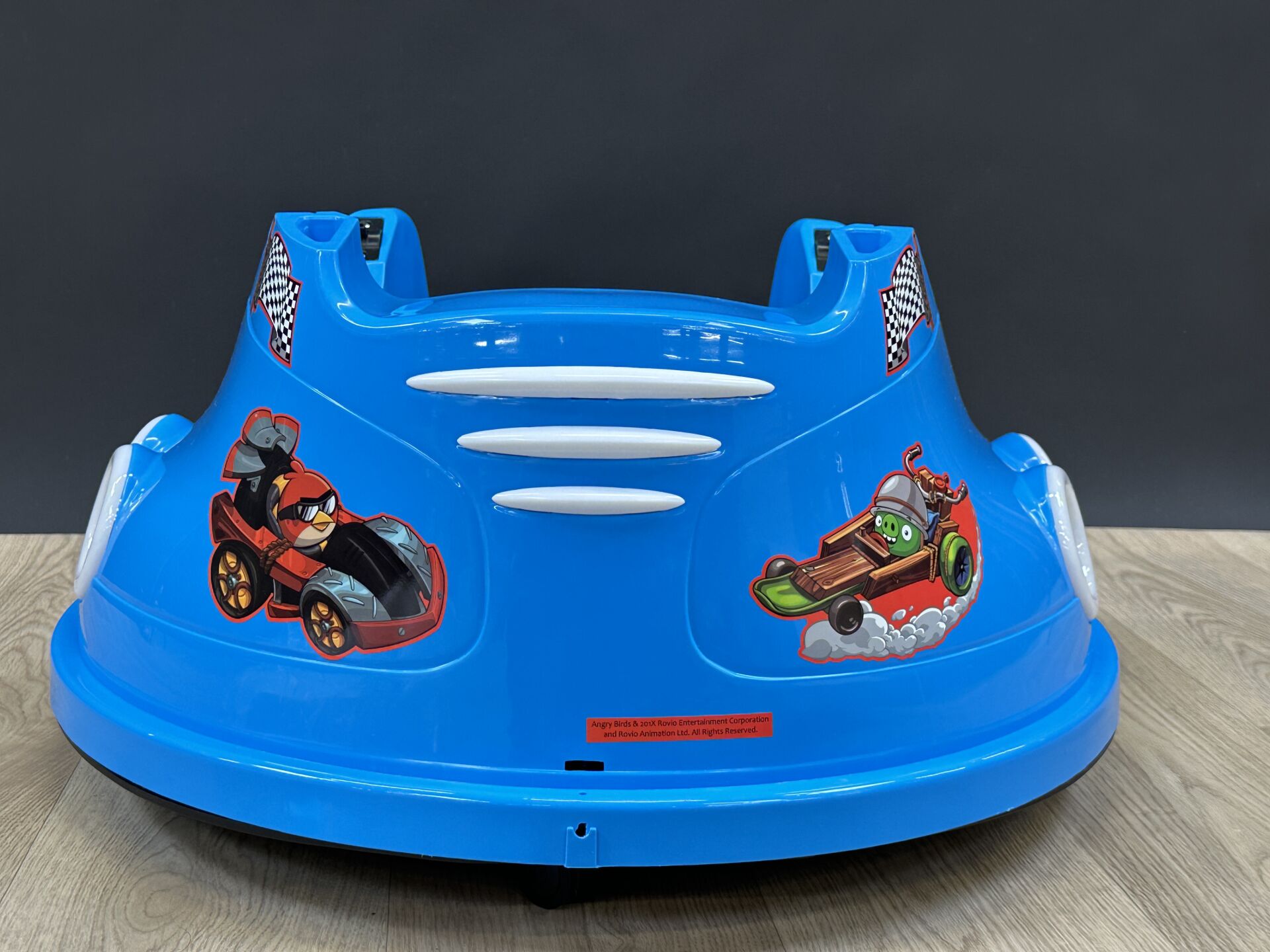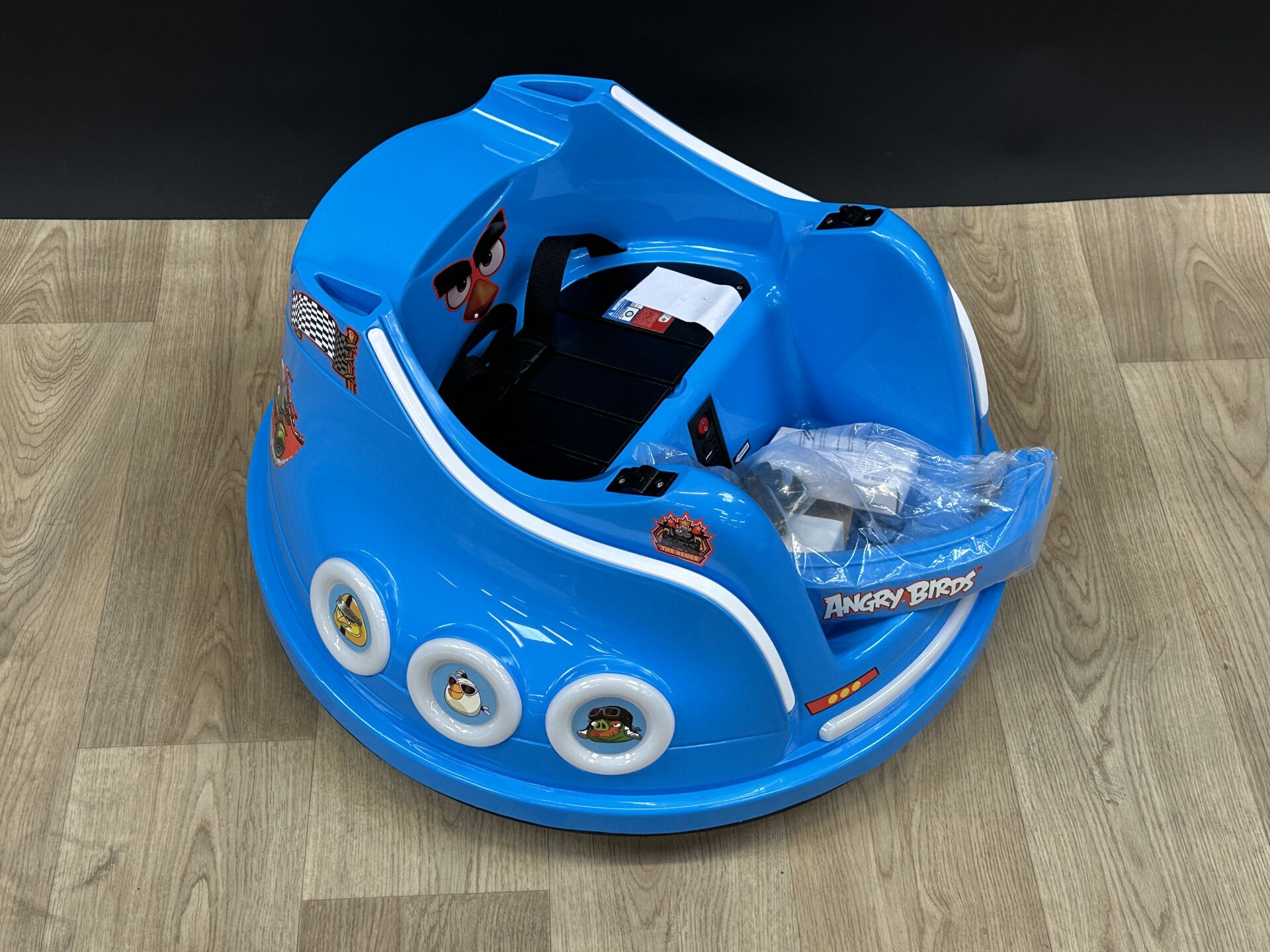 AIYAPLAY - Autoscooter pour enfant, couleur bleu et décor Angry Birds. 3 à 8 ans. Lot issu de colis non réclamés : état de fonctionnement non garanti. EXPEDITION POSSIBLE (sur devis).
