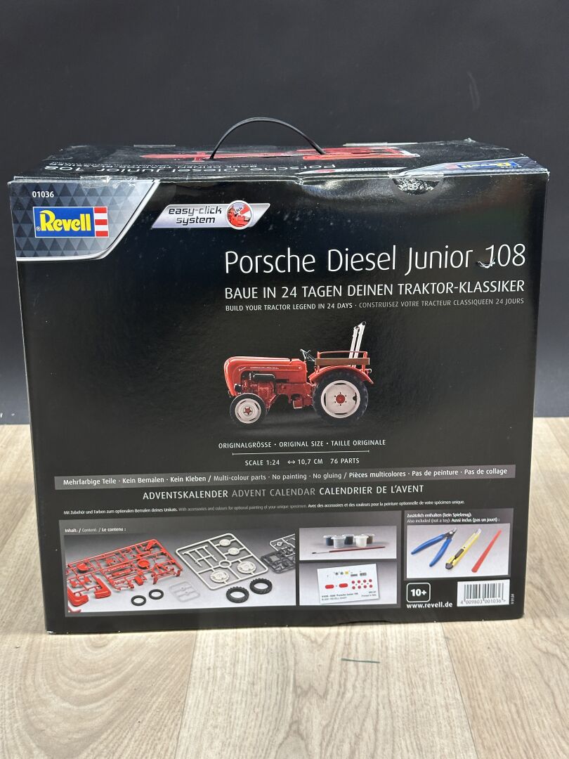 Réunion de : - REVELL - Calendrier de l'Avent à construire : Porsche diesel junior 108; - MJX - HYPER GO - modèle réduit 1:14 de voiture télé-commandé, à partir de 14 ans. EXPEDITION POSSIBLE (sur devis).