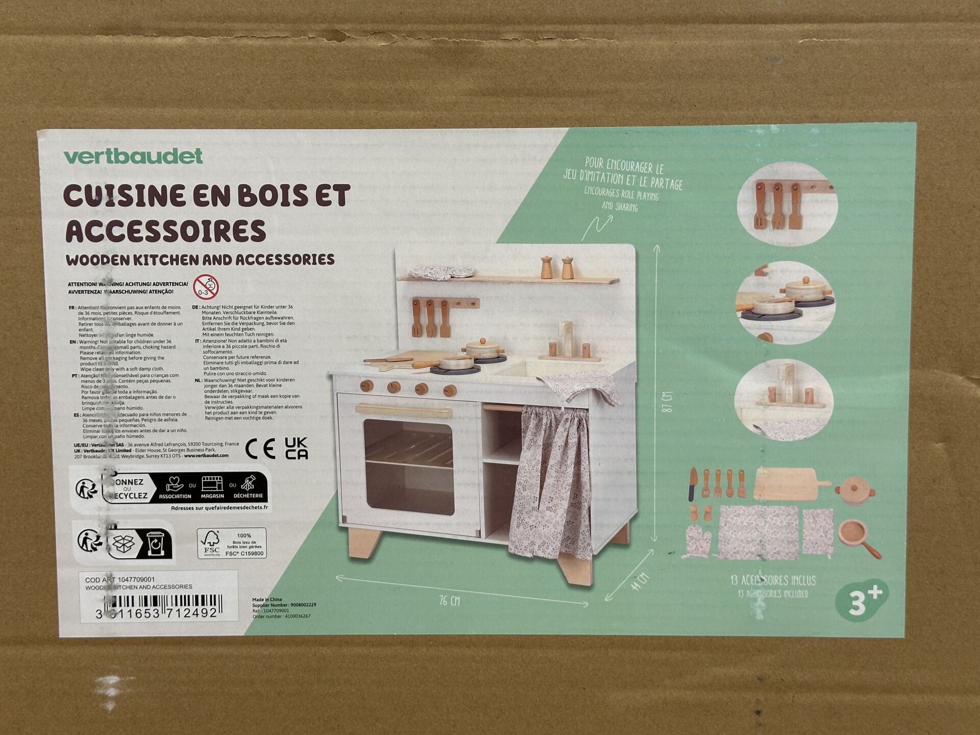 Réunion de : - VERTBAUDET - Cuisine en bois et accessoires, à partir de 3 ans; - JOYTECH - Vélo d'équilibre. EXPEDITION POSSIBLE (sur devis).