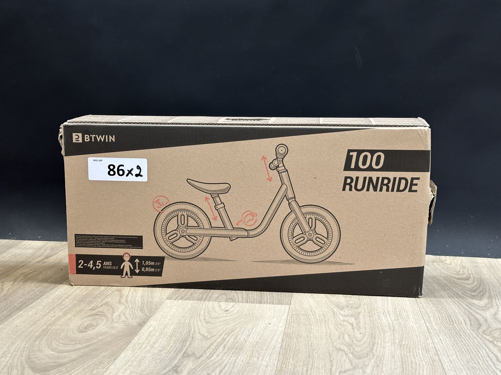 Réunion de : - BTWIN - Draisienne Runride à partir de 2 ans; - Vélo d'enfant rouge, avec petites roulettes. EXPEDITION POSSIBLE (sur devis).