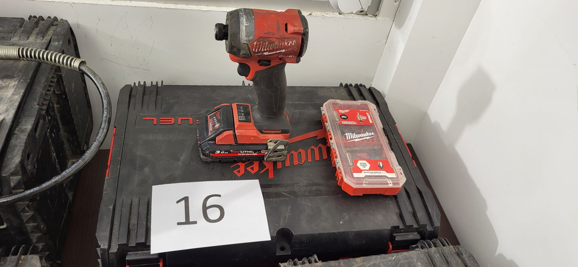 Visseuse à chocs autonome MILWAUKEE, modèle M 18 FID 3, de 2023, batterie 3 Ah, coffret, sans chargeur On joint : Boite d'embouts MILWAUKEE