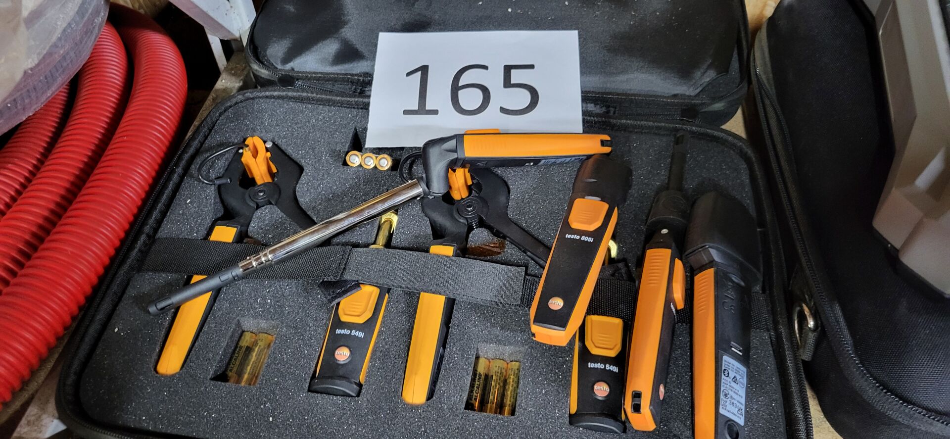 Coffret TESTO garni comprenant : 2x115i thermomètre à pince 2x549 sondes de pression 405i thermo et anémomètre 410i anénomètre 605i thermi-hygnomètre 805i thermomètre infrarouge