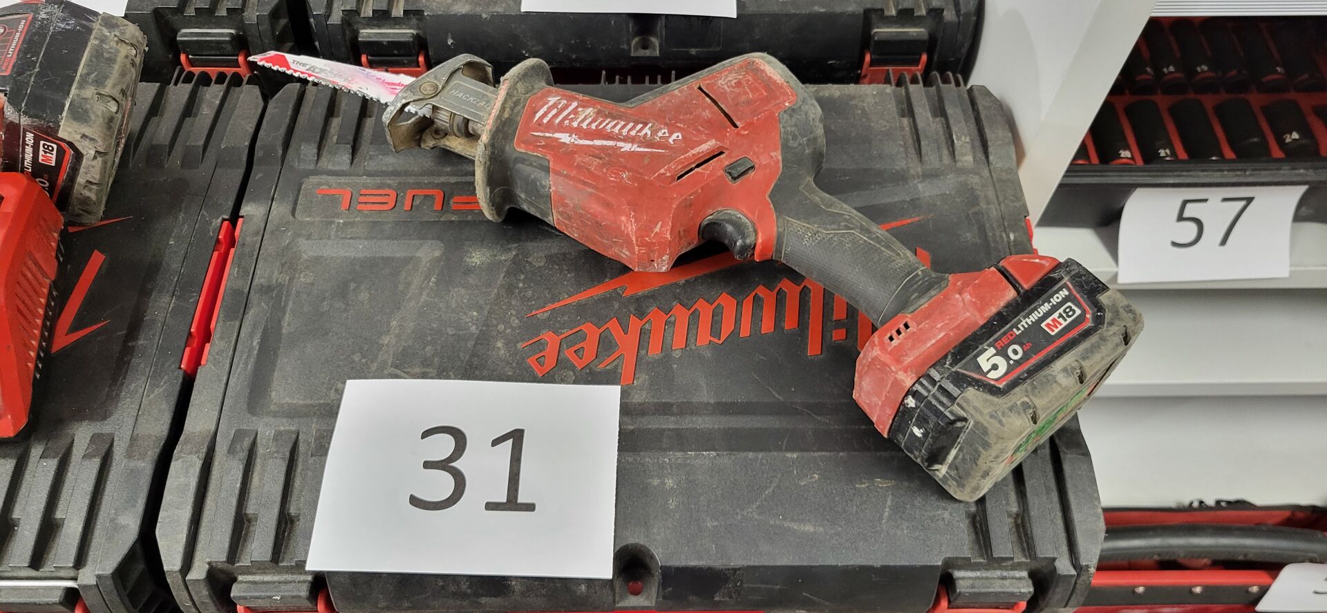 Scie sabre MILWAUKEE autonome, modèle M 18 FHZ (18V), batterie 5 Ah, sans chargeur, coffret