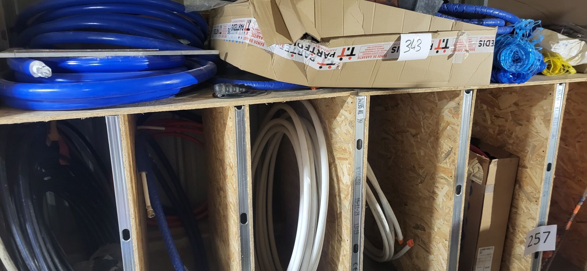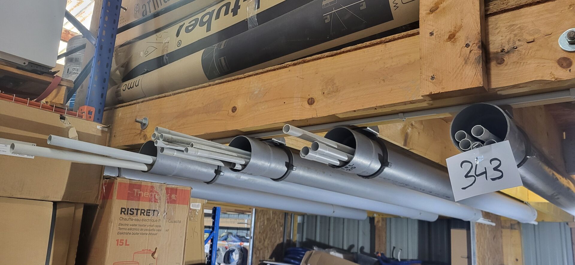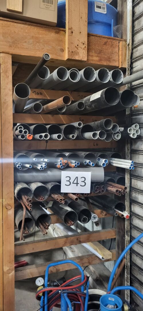Stock de tubes de cuivre (longueurs et section diverses), tubes multicouches (longueurs et section diverses), tubes PVC (longueurs et section diverses) et tubes IRL