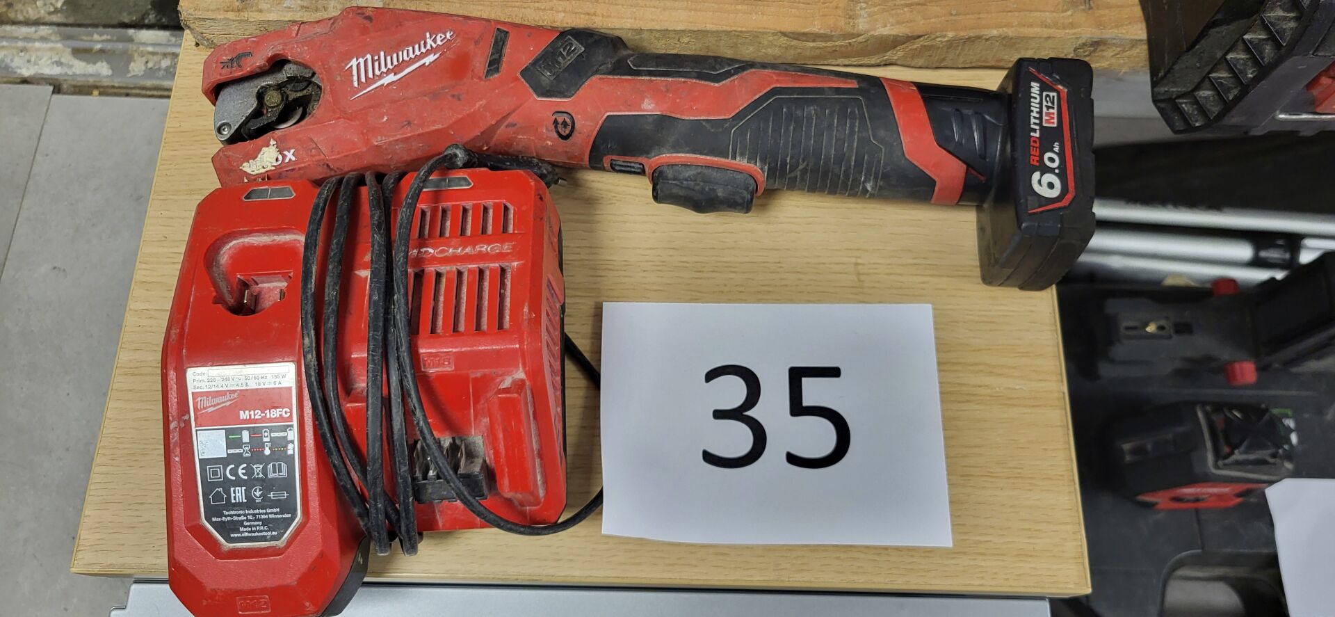 Coupe-tube MILWAUKEE autonome, modèle M 12 PCSS, batterie 6 Ah, chargeur