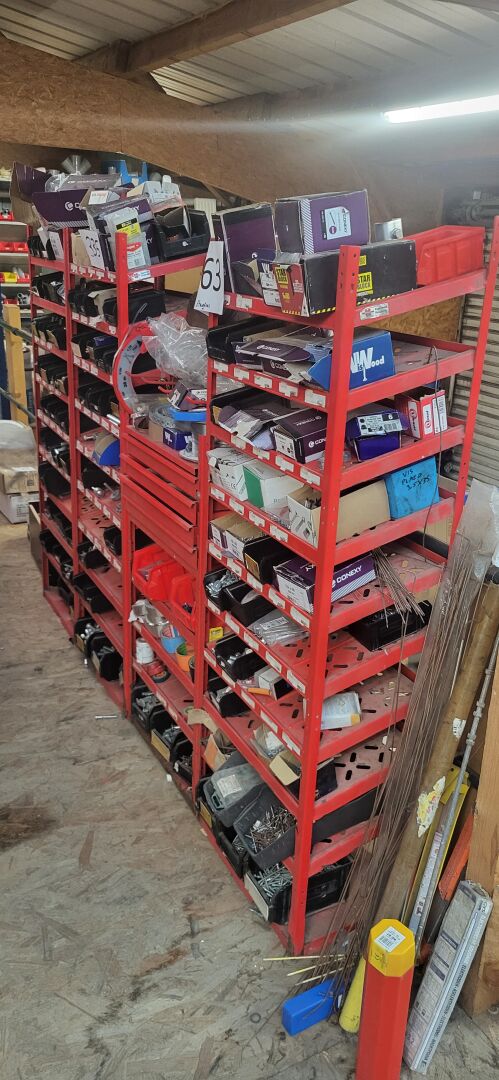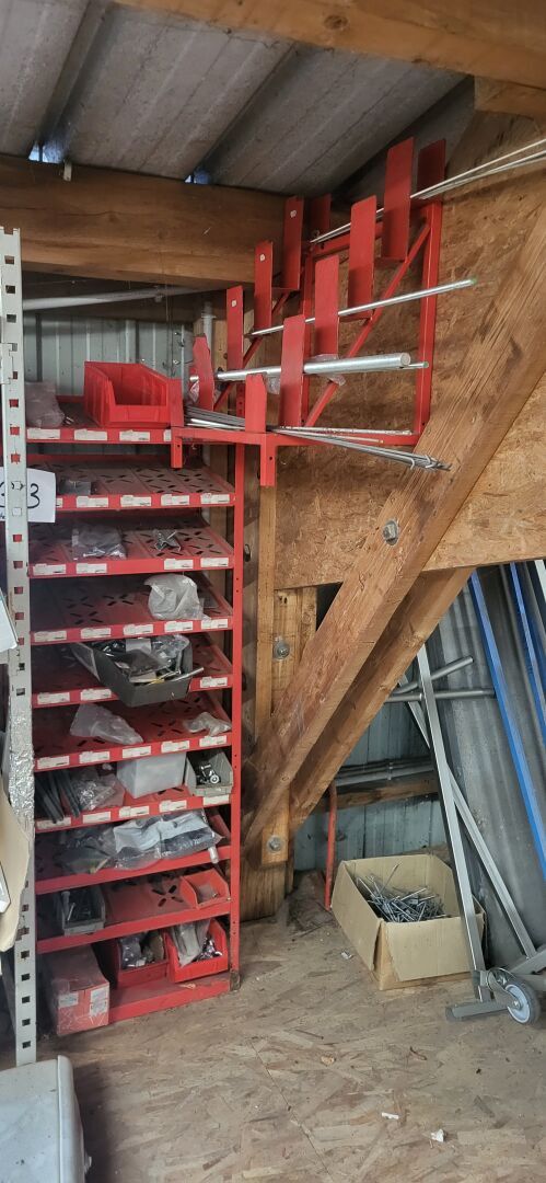 5 étagères en métal laqué rouge à 4 tiroirs, 34 x 53 x 15