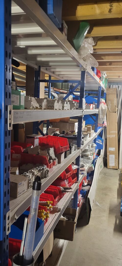Rack petit porteur en métal laqué bleu et blanc comprenant : 8 échelles, 2 m 56 lisses, 1.5 m