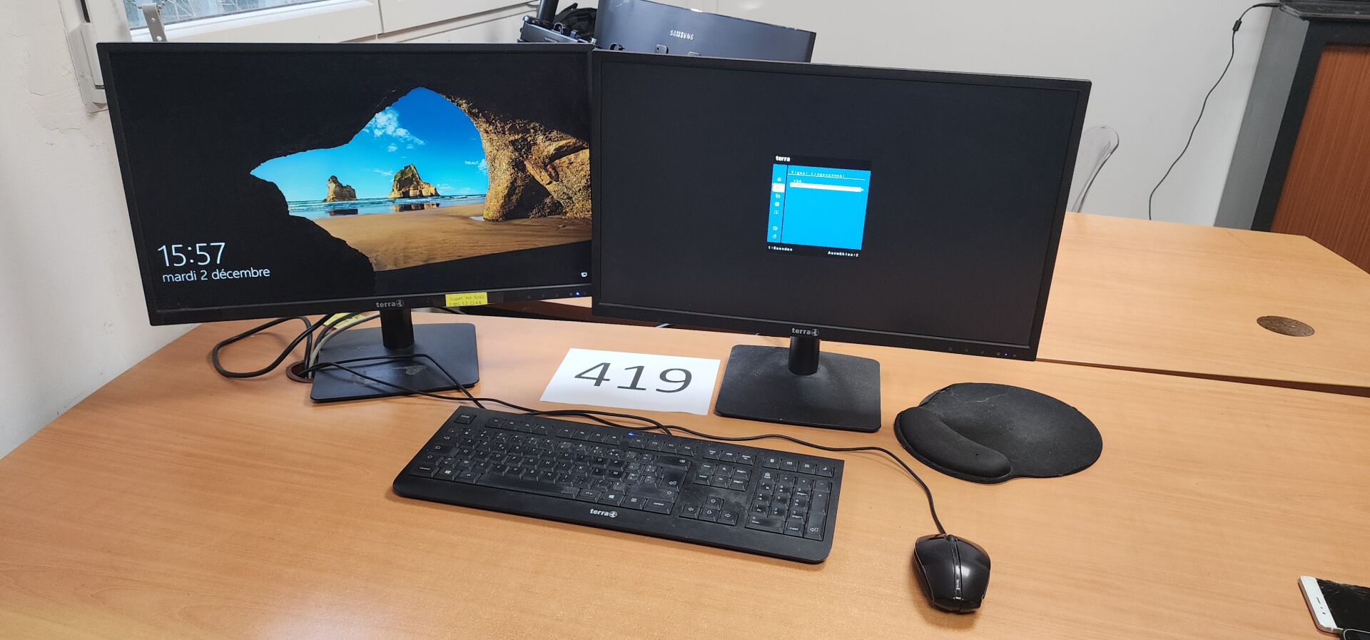 Destructeur de documents REXEL, modèle PROMAX QS MES 823 Configuration informatique comprenant : Unité centrale TERRA, processeur Intel Core i5 2 écrans TERRA 23" Clavier et souris filaires