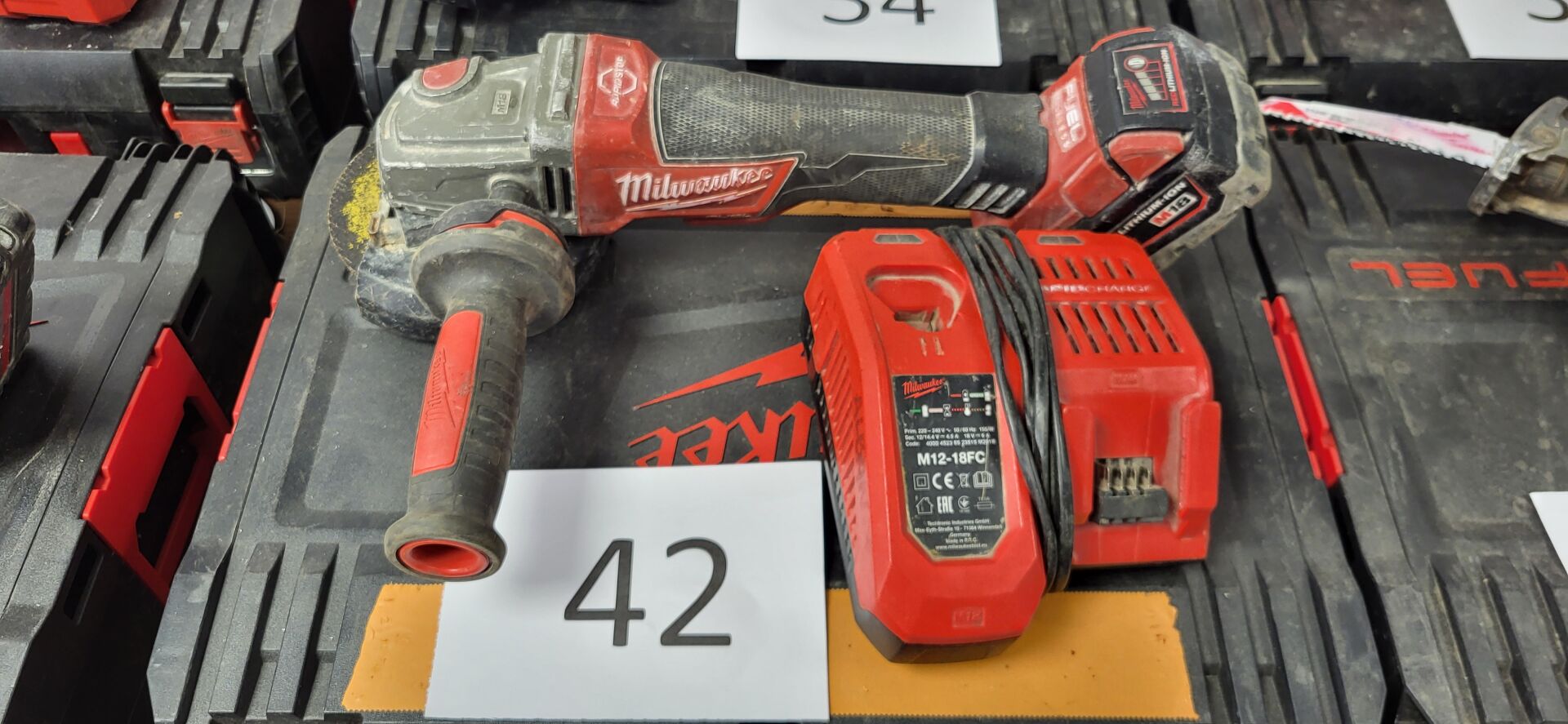 Meuleuse autonome MILWAUKEE, modèle M 18 CAG 125 XPDP (18V), diamètre 125 mm, batterie 5 Ah, chargeur, coffret NS : 4671001001510 C 2019