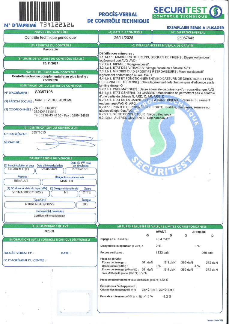 VENDU SUR DESIGNATION - VISIBLE A L'ETUDE DE NANTES - A ENLEVER AVANT LE 22 12 2025 BVM6- CLIM- RADIO- GPS- VITRES ET RETROS ELECT- REGULATEUR DE VITESSES- CAMERA DE RECUL- CAISSE BOIS AVEC RGT- ATTELAGE REMORQUE- PUB ADH. SIEGES EN TISSU TACHES- SIEGE CONDUCTEUR DECHIRE- PLASTIQUES RAYES ET TACHES. IMPACT SUR LA VITRE AV- ENFONCEMENT AILE AVG, HAUT COTE G ET PORTE LAT D- RAYURES D'USAGE. DEFAILLANCES MINEURES: DISQUES OU TAMBOURS DE FREINS AVG ET AVD LEGEREMENT USES- RIPAGE EXCESSIF- VITRE AV FISSUREE- MIROIR D ENDOMMAGE- GLACE DU CLIGNOTANT G DEFECTUEUSE- CARROSSERIE AVG, G ET ARG ENDOMMAGEE- SIEGE CONDUCTEUR DEFECTUEUX- DETERIORATION OUVRANT D. FRAIS VOLONTAIRES 18 % HT