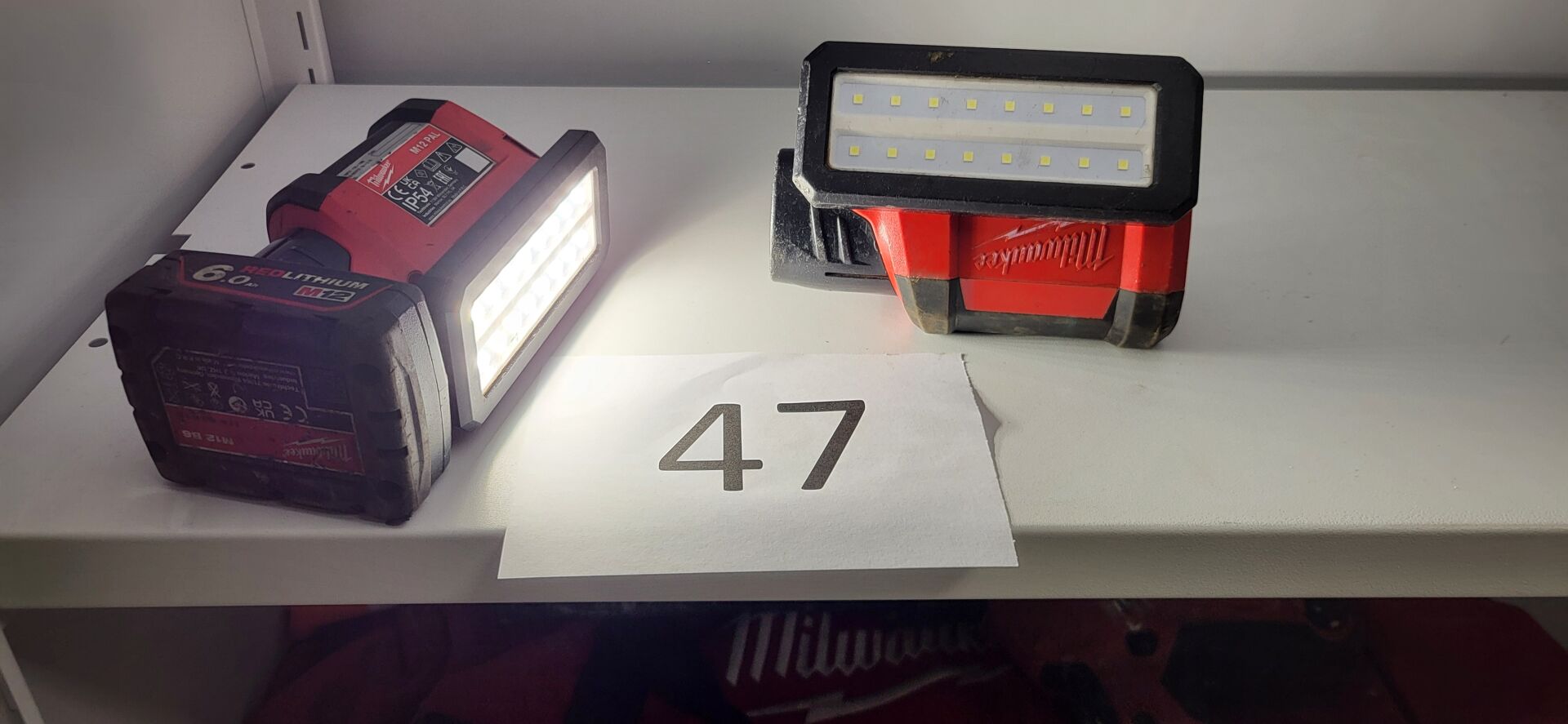 2 spots de chantier autonomes MILWAUKEE, modèle M 12 PAL (18V), 2 batteries 6 et 2 Ah, sans chargeur