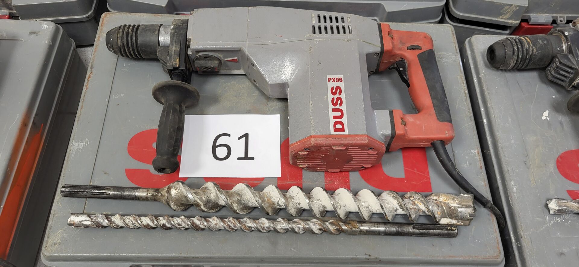 Perforateur-burineur électrique filaire DUSS, modèle PX 96, mallette, de 2022 NS : 5997708 On joint : Jeu de forêts