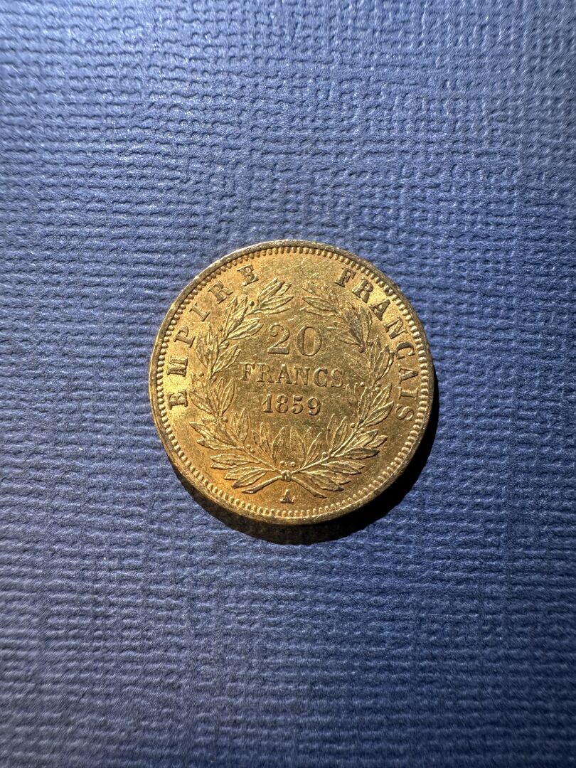 Pièce de 20 francs or 1859. Poids : 6.44 g PIECES CONSERVEES A LA BANQUE - VENDUES SUR DESIGNATION - VISIBLES SUR RENDEZ-VOUS UNIQUEMENT 48 H AVANT LA VENTE - DELIVRANCE SUR RENDEZ-VOUS UNIQUEMENT 72 HEURES A L'AVANCE