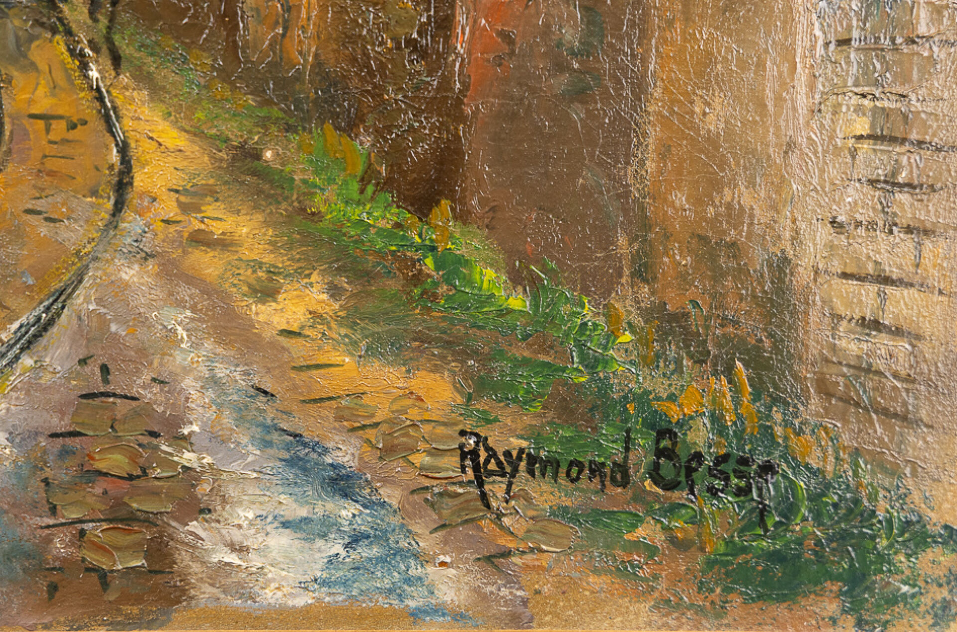 Raymond BESSE (1899-1969). Vue de quai industriel à la péniche et au chemin de fer. Huile sur toile, signée en bas à droite (restaurations). Haut. : 49. 5 cm- Larg. : 61 cm