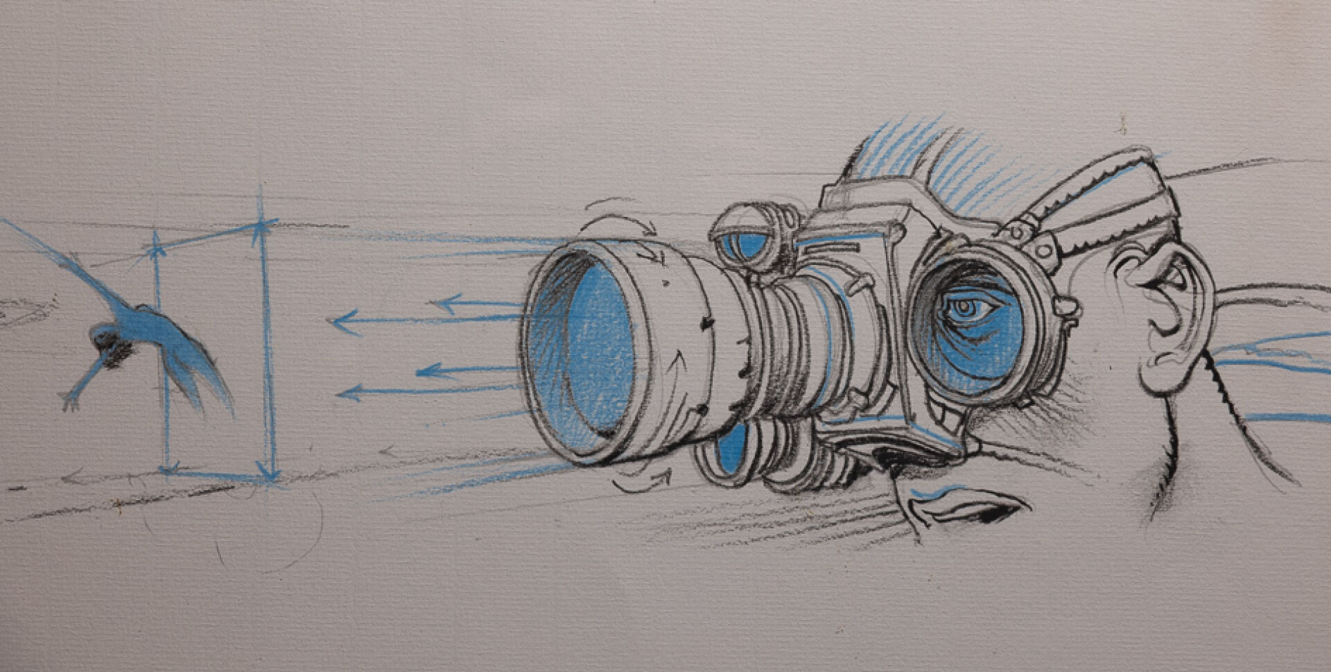 Enki BILAL (né en 1951). Créateur d'Univers, 1988. Lithographie noire et bleue sur vélin, signée en bas à gauche. Haut. : 22 cm - Larg. : 52.5 cm