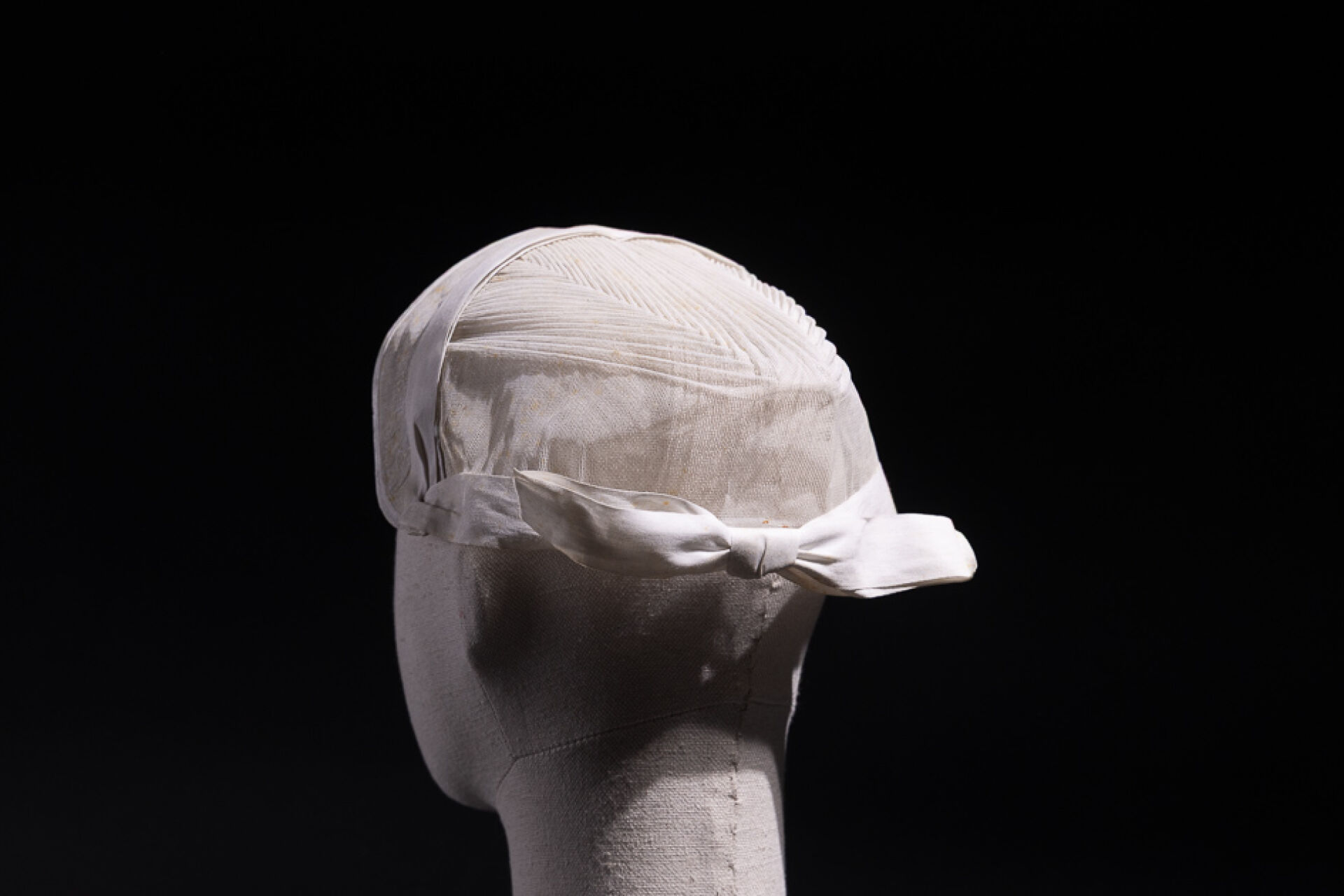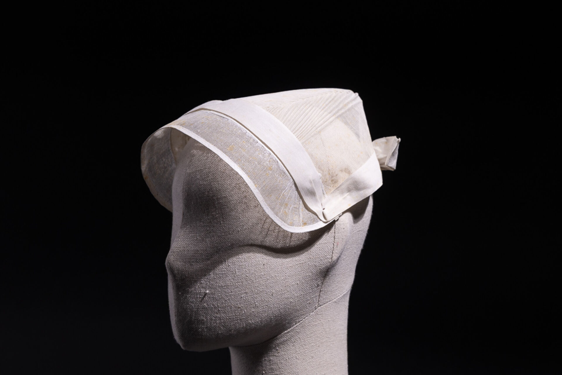 Coiffe du nord du pays nantais (Rougé-Ruffigné, Derval?) en gaze paillé, lien "jaconas" en percale (bon état). Début XXe siècle.