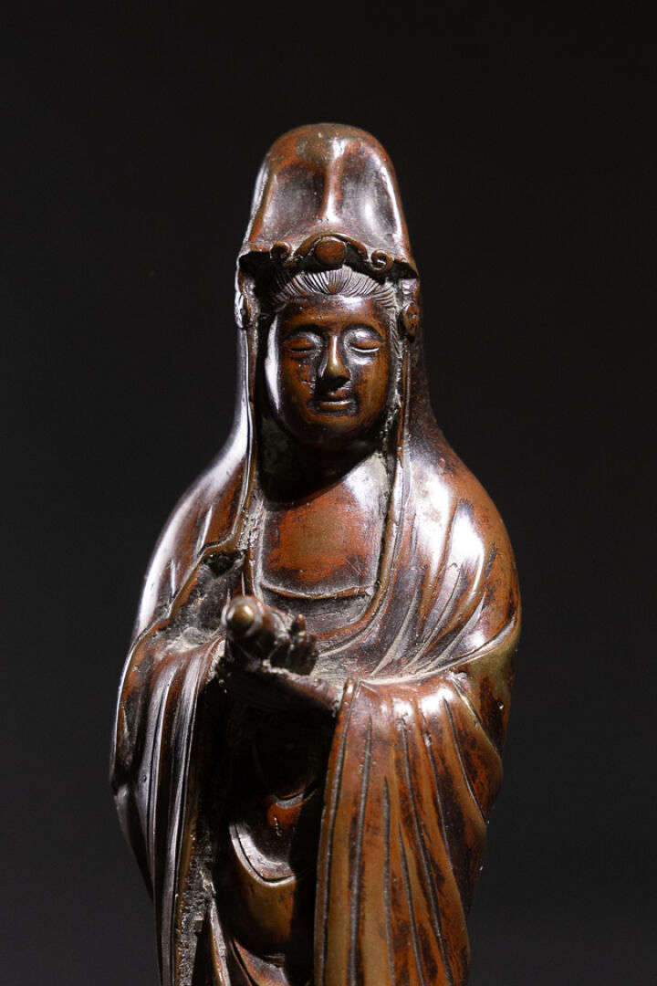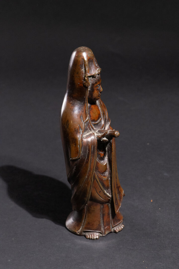 Figure de Kannon en bronze à patine brun-rouge. Japon, période Meiji (1868-1912) Haut. : 25 cm