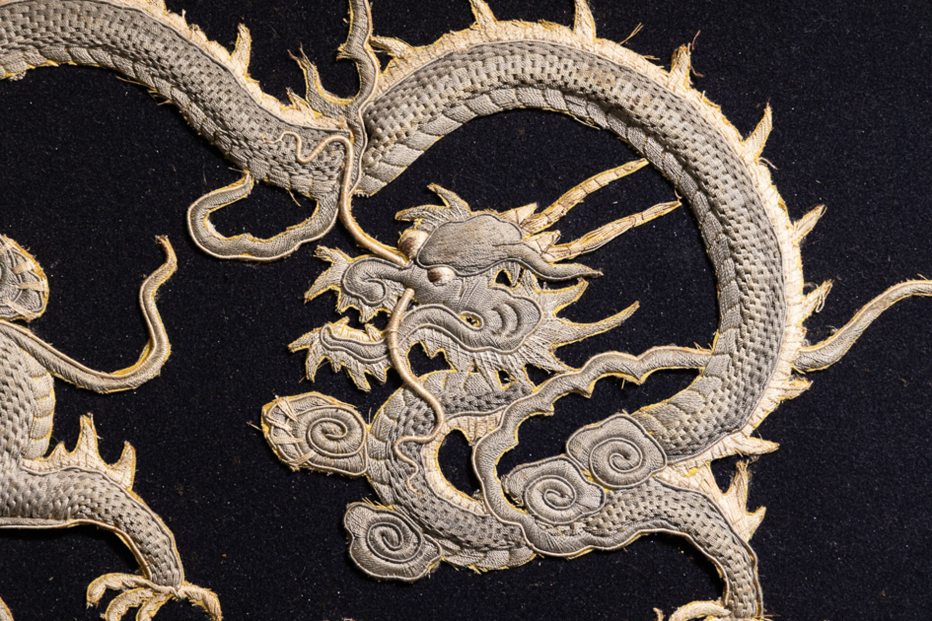 Panneau figurant un dragon volant. École asiatique du XXe siècle. Haut. : 44 cm - Larg. : 54 cm