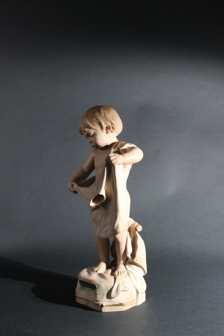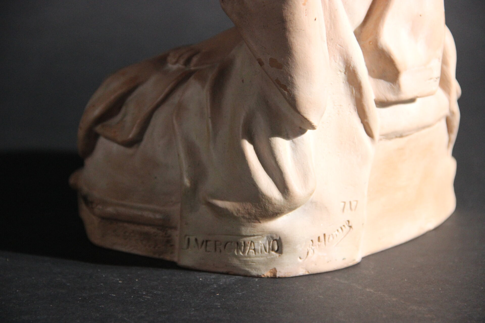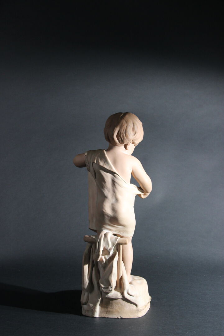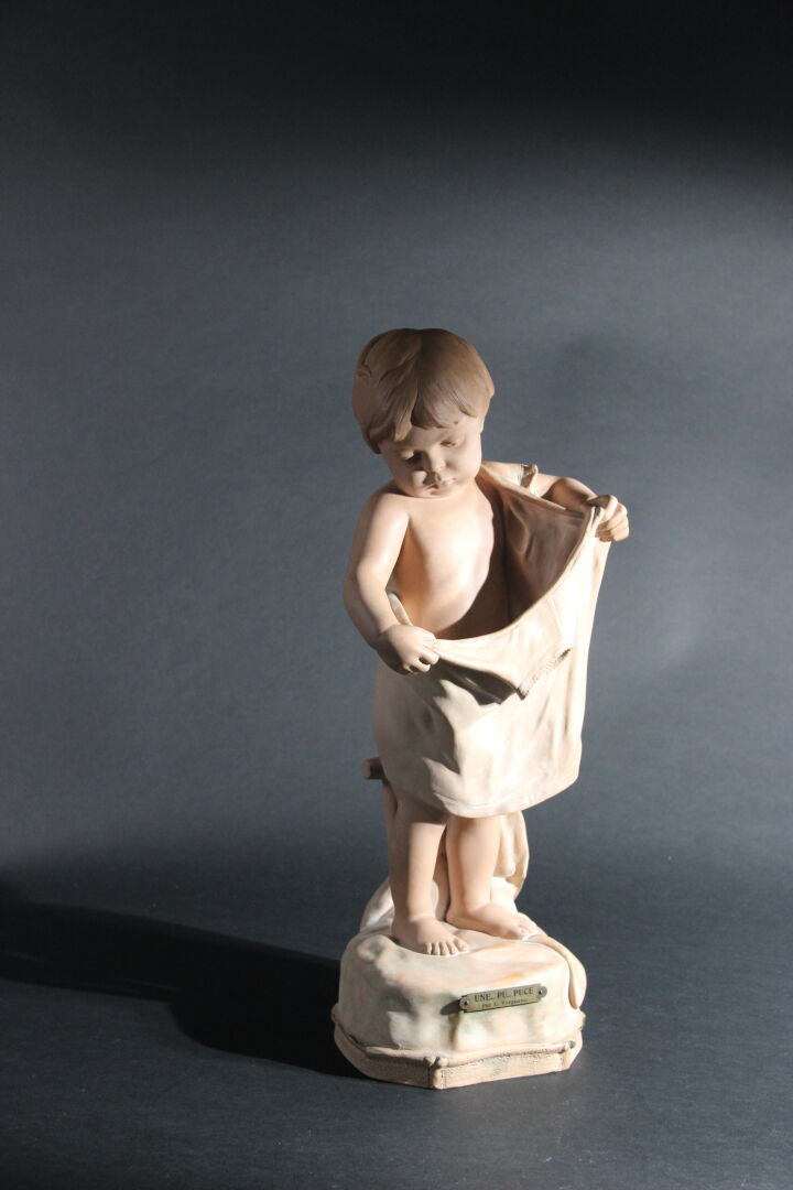 Lorenzo VERGNAGNO (1850-1910). "Une.. pu.. puce" Statuette en biscuit, signée, numérotée 717 - A. HANNE. Haut. : 54 cm