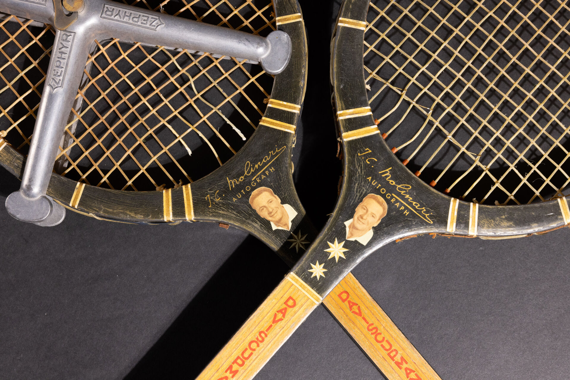 Deux raquettes de tennis en bois DAVIS CUPMAN - MOLINAR GAUTHIER FILS (accidents). Long. : 69 cm