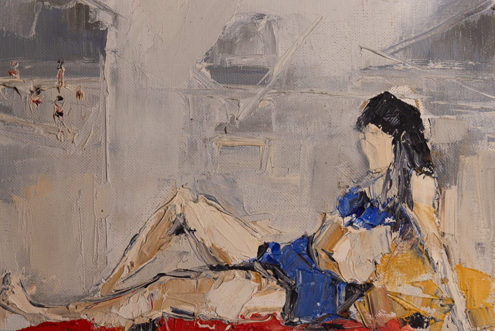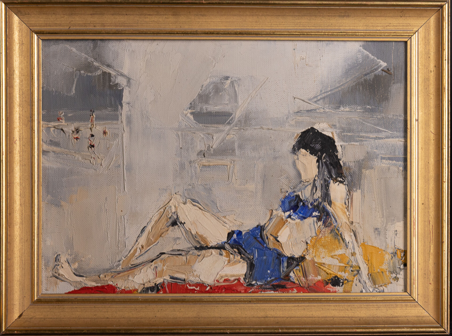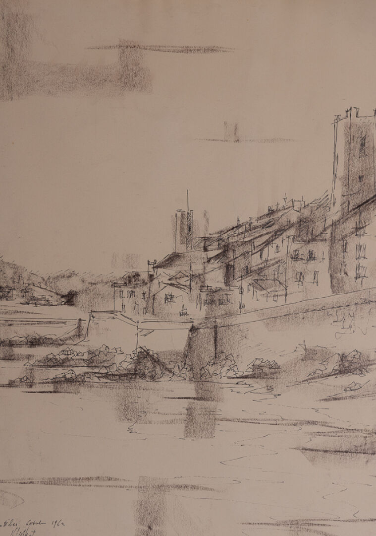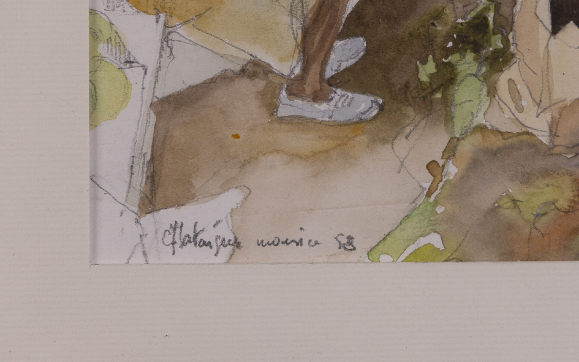 Urbain HUCHET (1930-2014). Scène de vie mexicaine. Aquarelle gouachée, contresignée en bas à droite et titrée aux deux tiers à droite "OAXACA (Mexique 28/06/64)". Haut. : 41.5 cm - Larg. : 28 cm Urbain HUCHET (1930-2014). Vue du port d'Antibes. Dessin au fusain et encre de chine, signé, situé et daté "1962" en bas à gauche. Haut. : 64 cm - Larg. : 48 cm Scène au grand marché de Fort de France, titrée "Petite étude pour Grand marché à Fort de France" et datée 98 en bas à droite, signée en bas à gauche "Maurice CHATAIGNER (né en 1941)?". Crayon aquarellé. Dim. à vue : Haut. : 20 cm - Larg. : 20 cm Attribué à Urbain HUCHET (1930-2015). Femme allongée sur la plage au maillot de bain bleu. Huile sur toile. Dim. à vue : Haut. : 19 cm - Larg. : 27 cm
