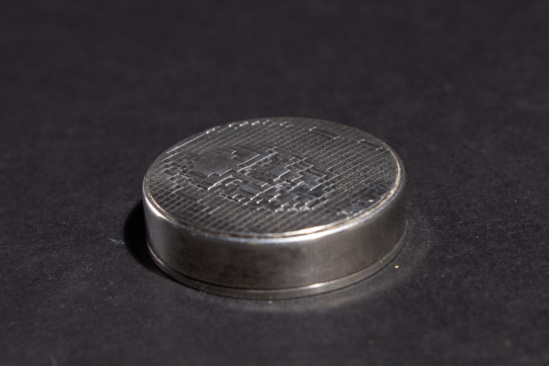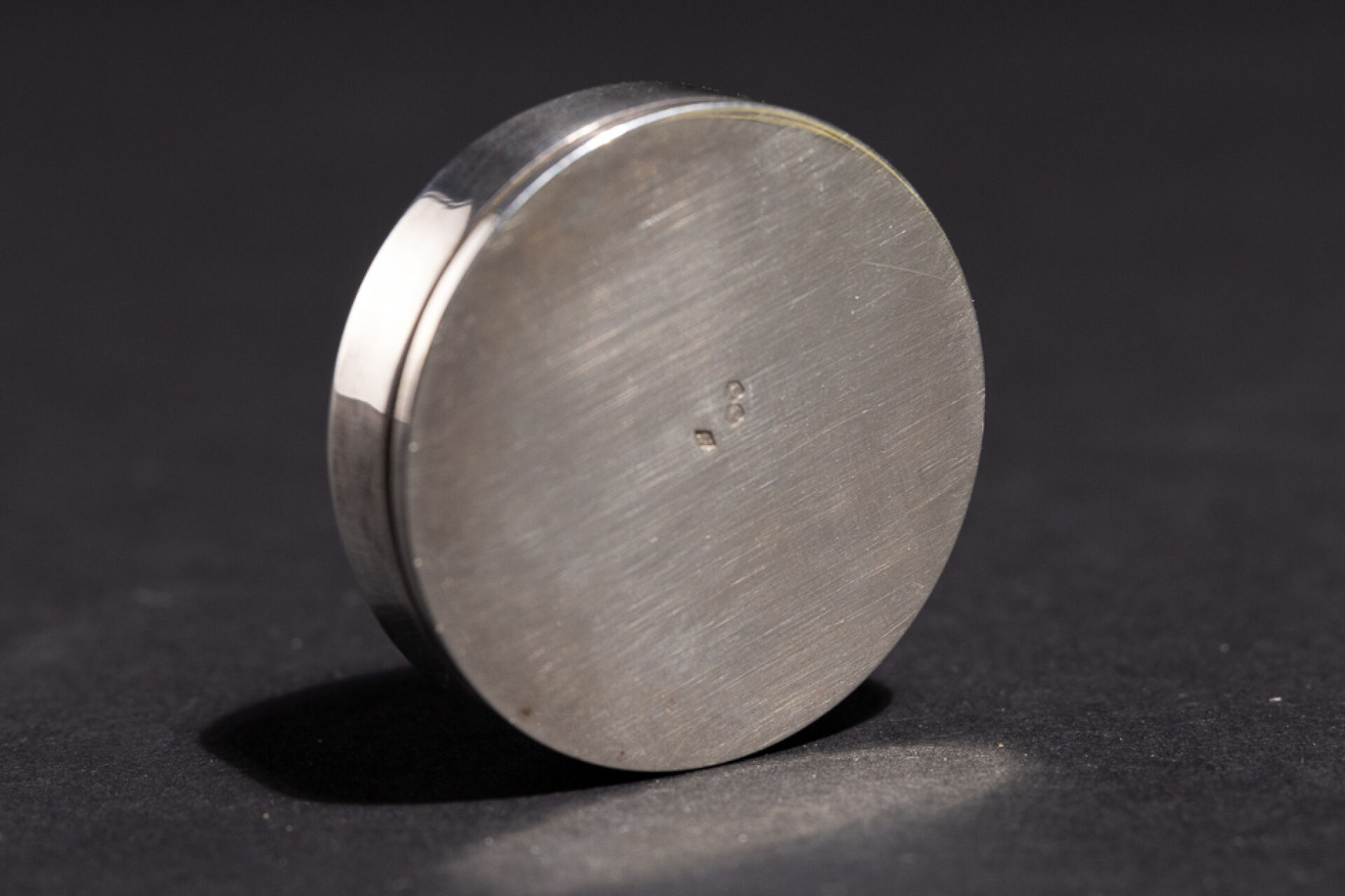 Pilulier en argent, le couvercle orné de la Joconde stylisée. XXe siècle. Poids : 41.9 g - Diam. : 4 cm