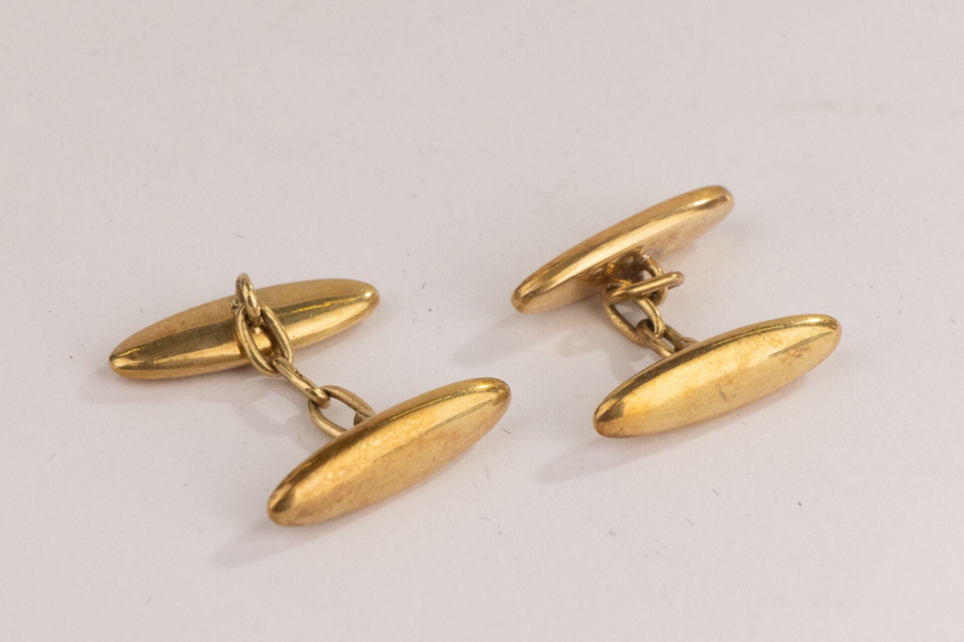 Paire de boutons de manchette en or jaune 18k (750 millièmes). Poids : 3,90 gr