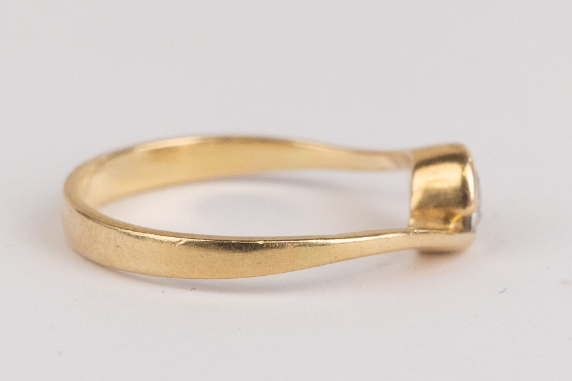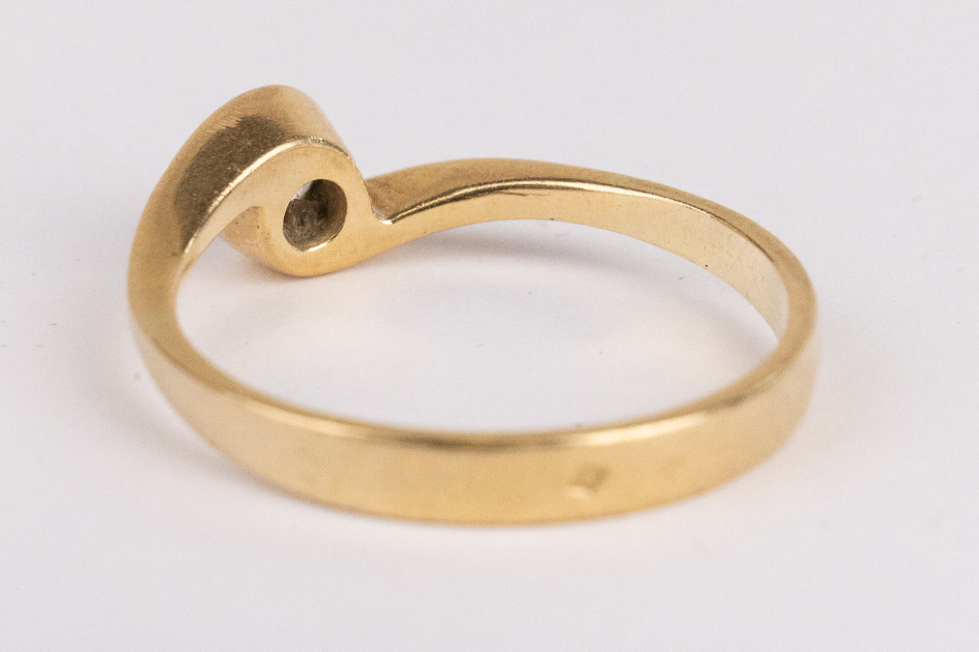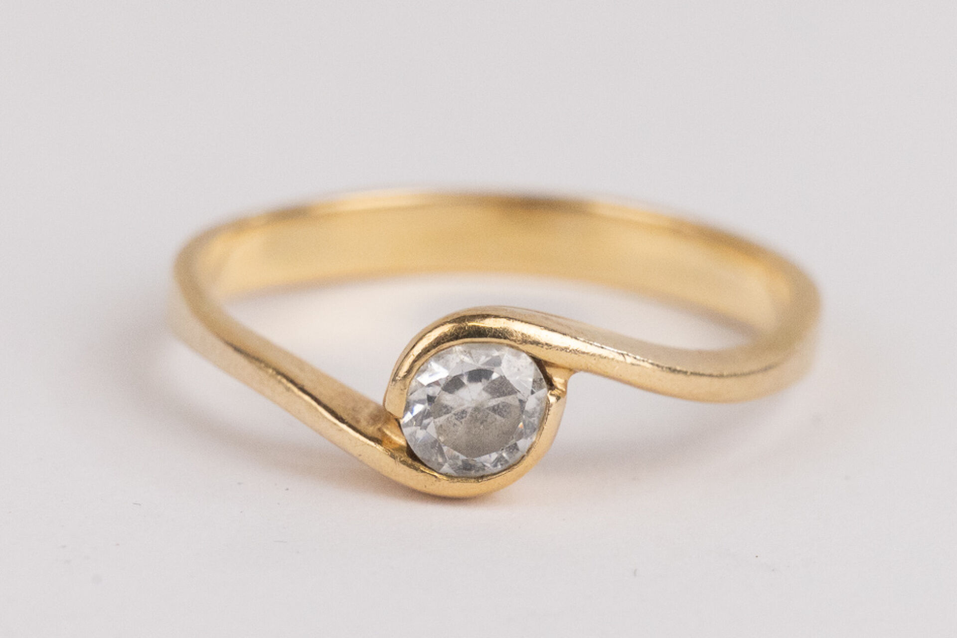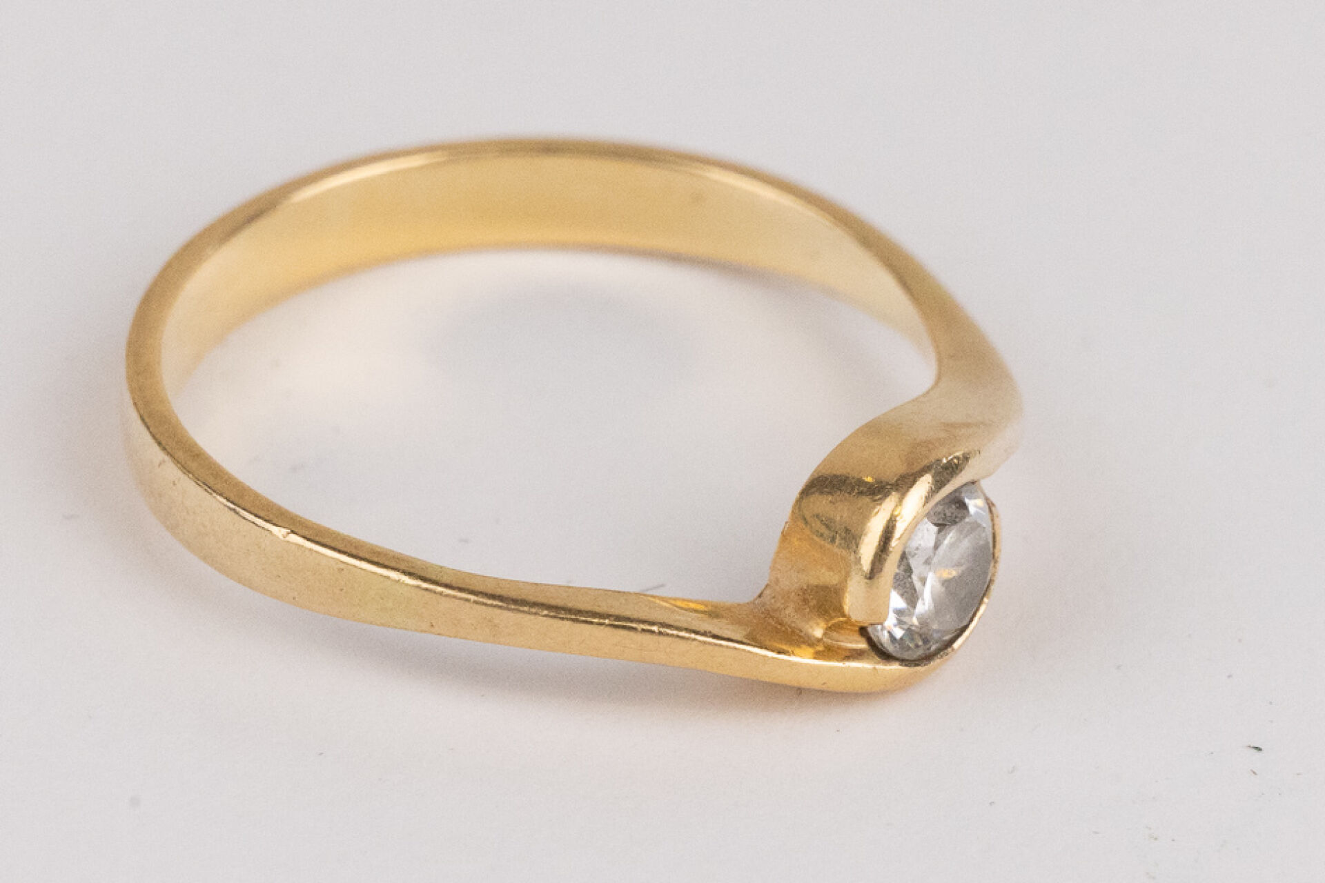 Bague en or jaune 18k (750 millièmes) ornée d'une pierre blanche sertie clos. Poids brut : 4,50 gr - Tour de doigt 65