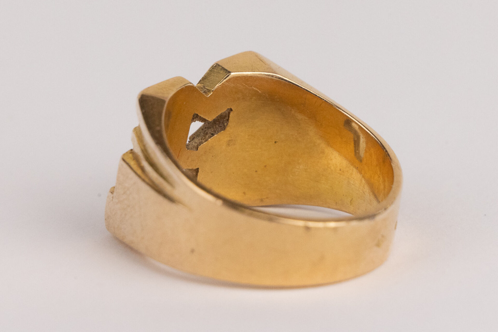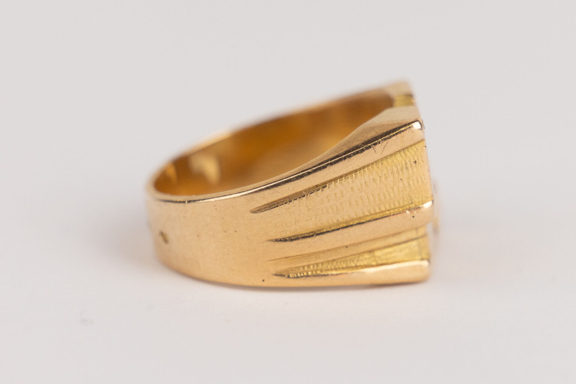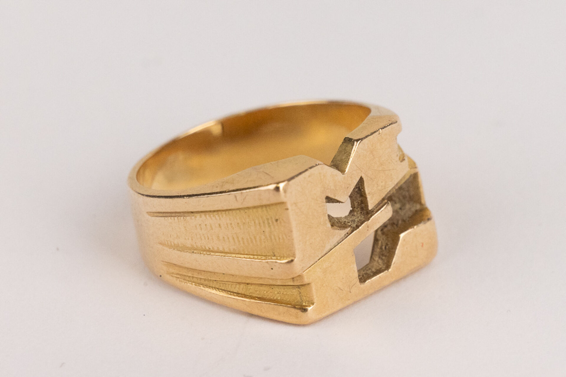 Chevalière en or jaune 18k (750 millièmes), initiales "ML". Poids : 12,60 gr - Tour de doigt 57
