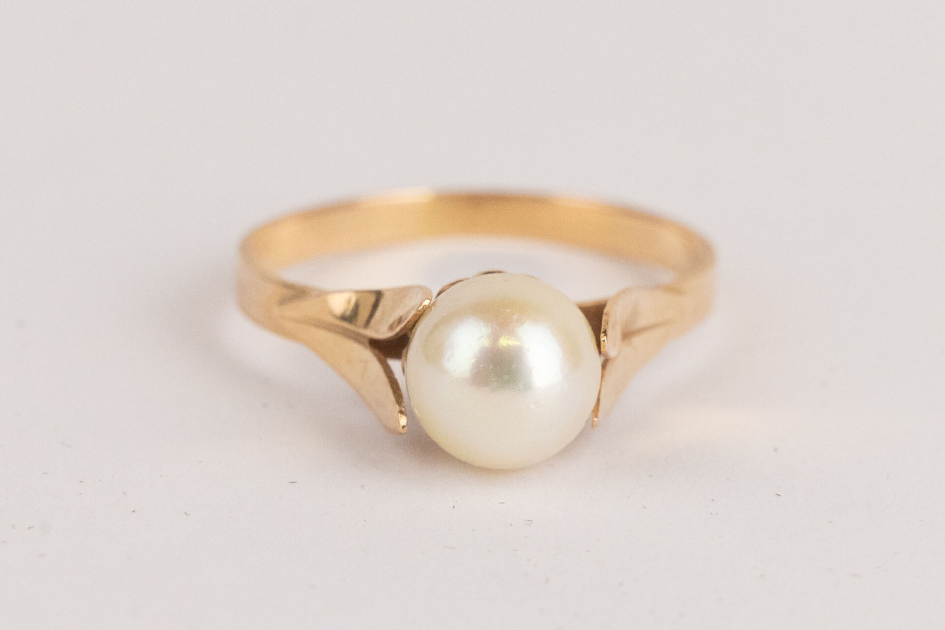 Bague en or jaune 18k (750 millièmes) ornée d'une perle de culture. Poids brut : 1,90 gr - Tour de doigt 51