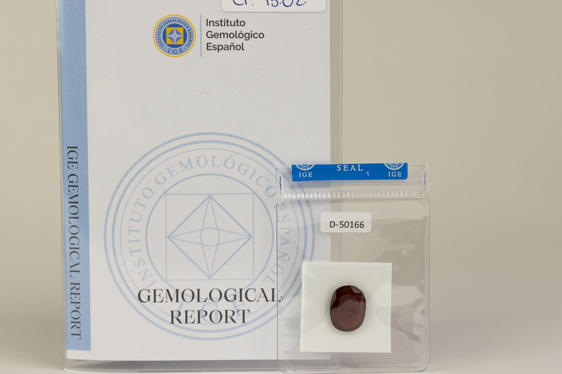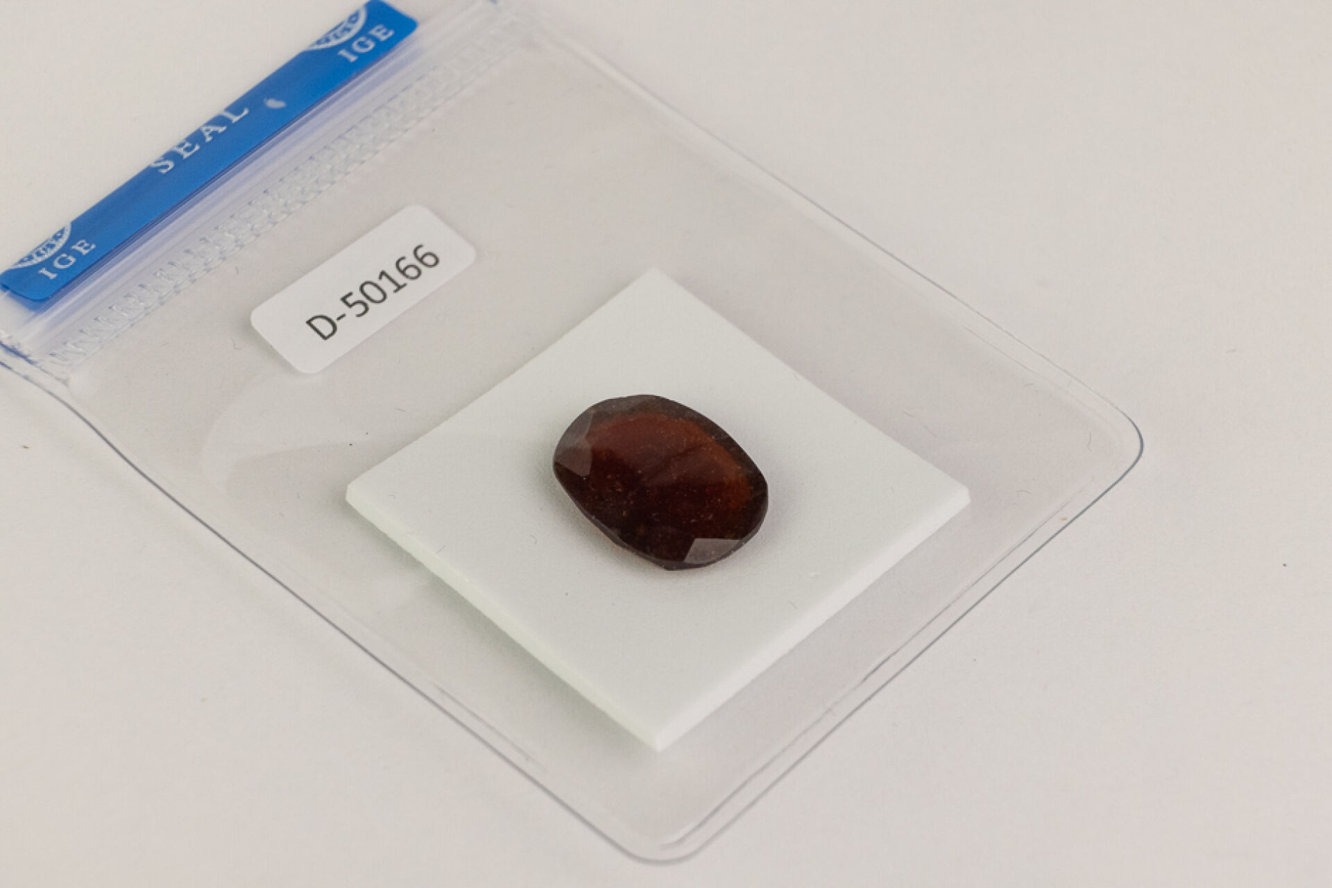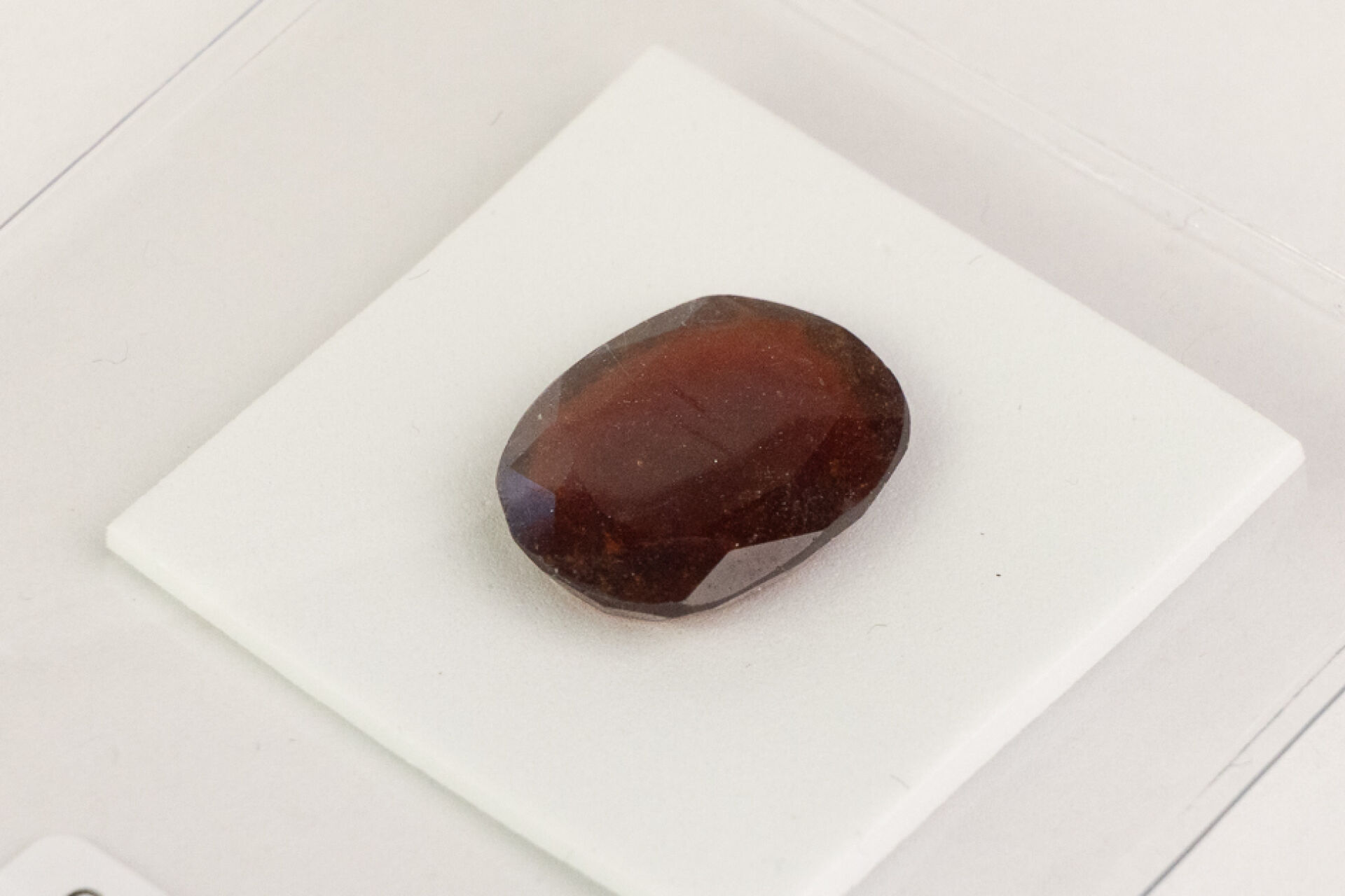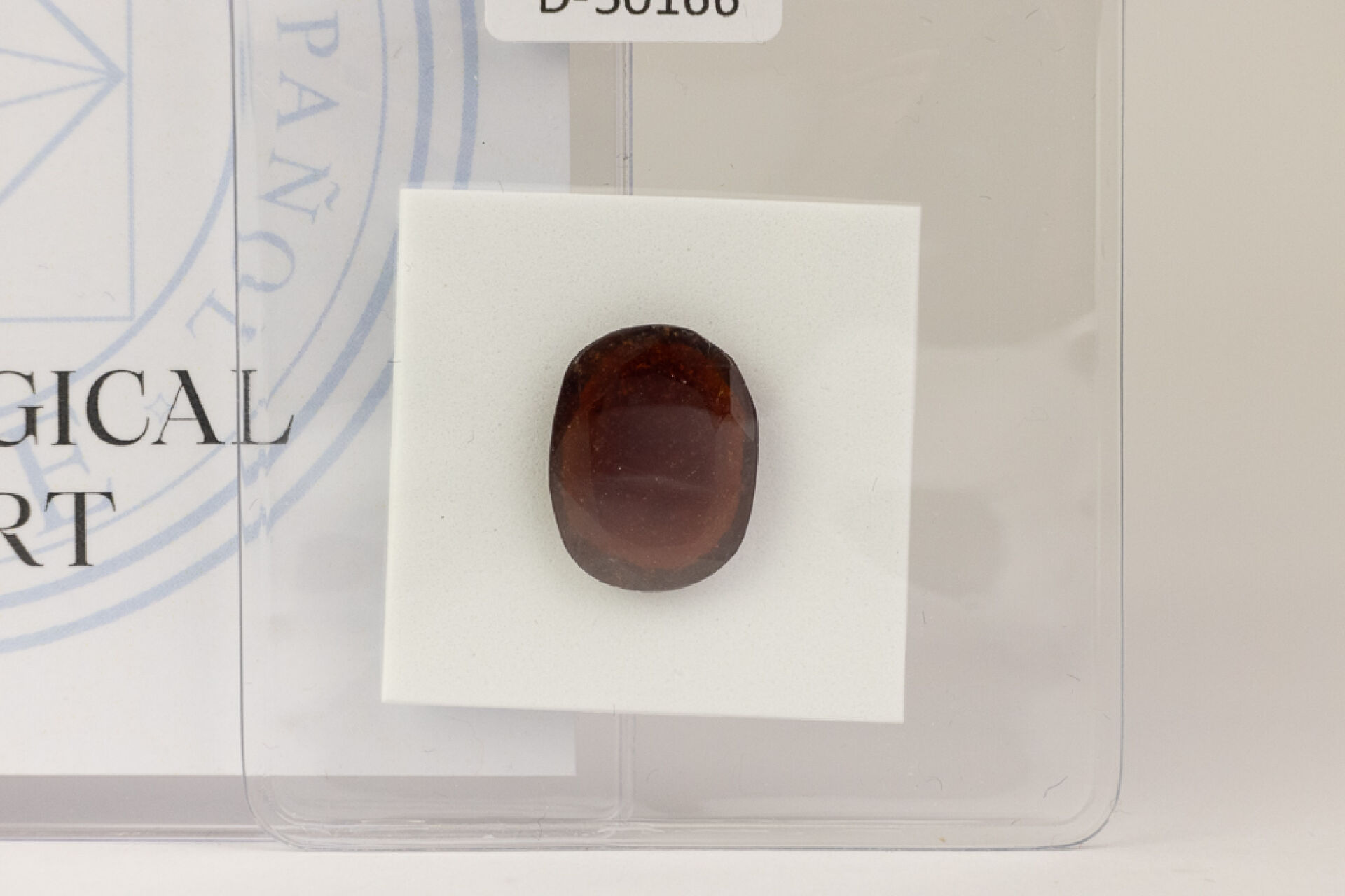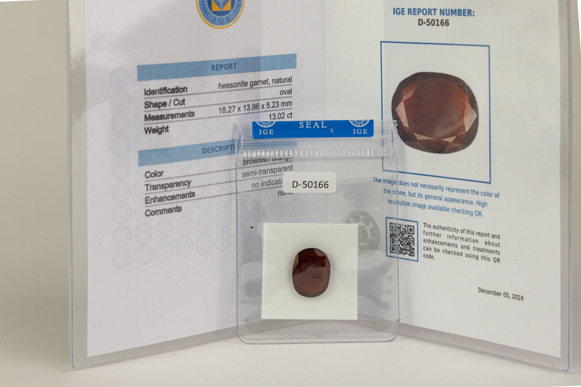 Grenat hessonite de forme ovale sur papier. Poids : 13,02 carat Dimensions : 18,27 x 13,96 x 5,23 mm Accompagné d'un certificat de gemmologie IGE