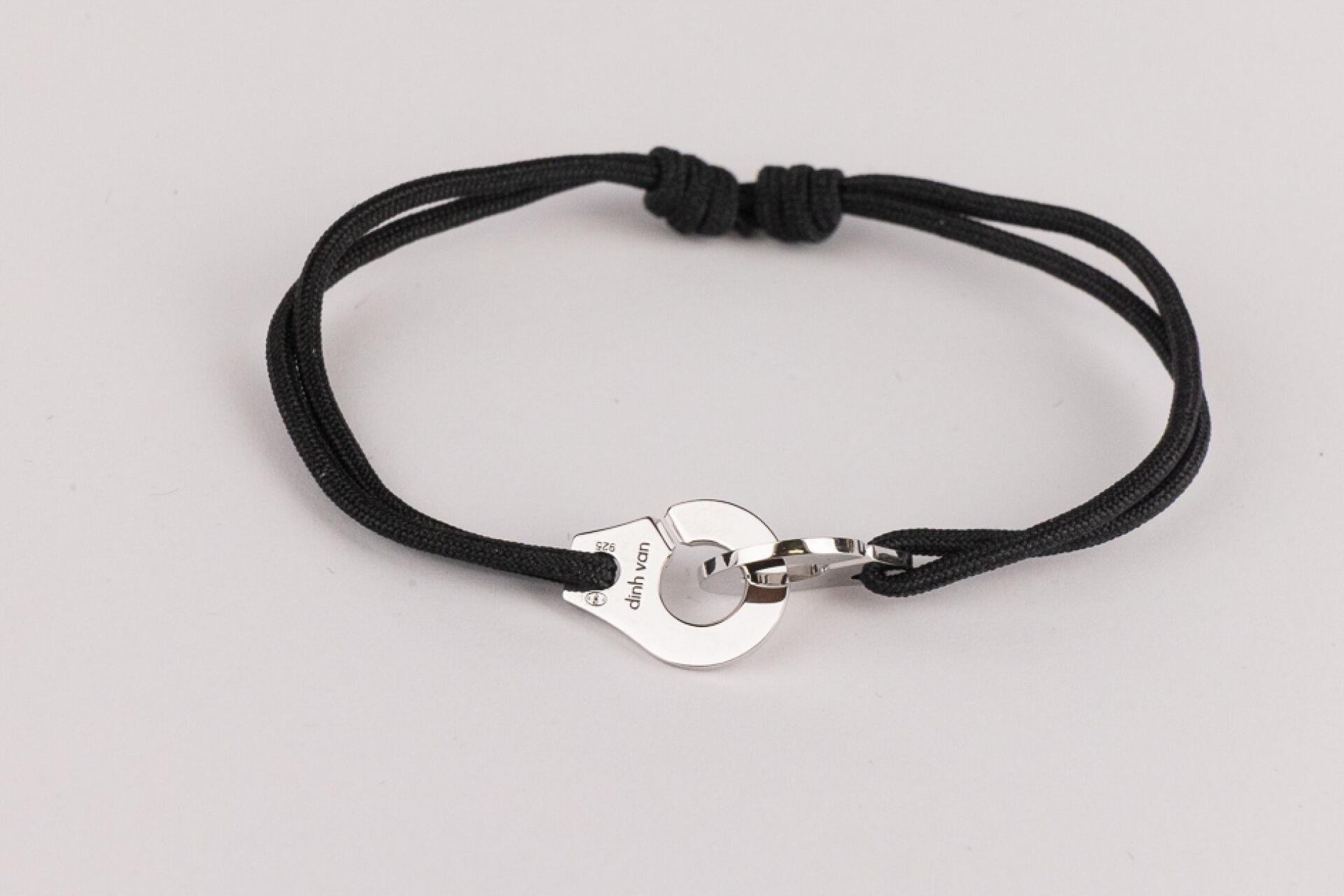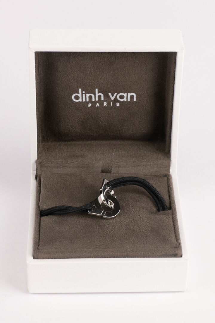 DINH VAN - Bracelet "Menottes" en argent 925 millièmes, cordon noir ajustable, dans son écrin. Poids brut : 3,37 gr