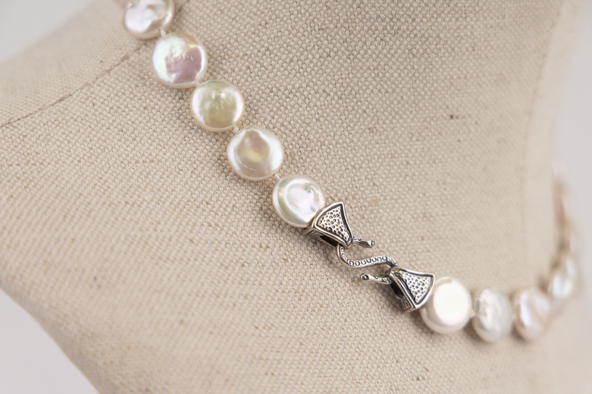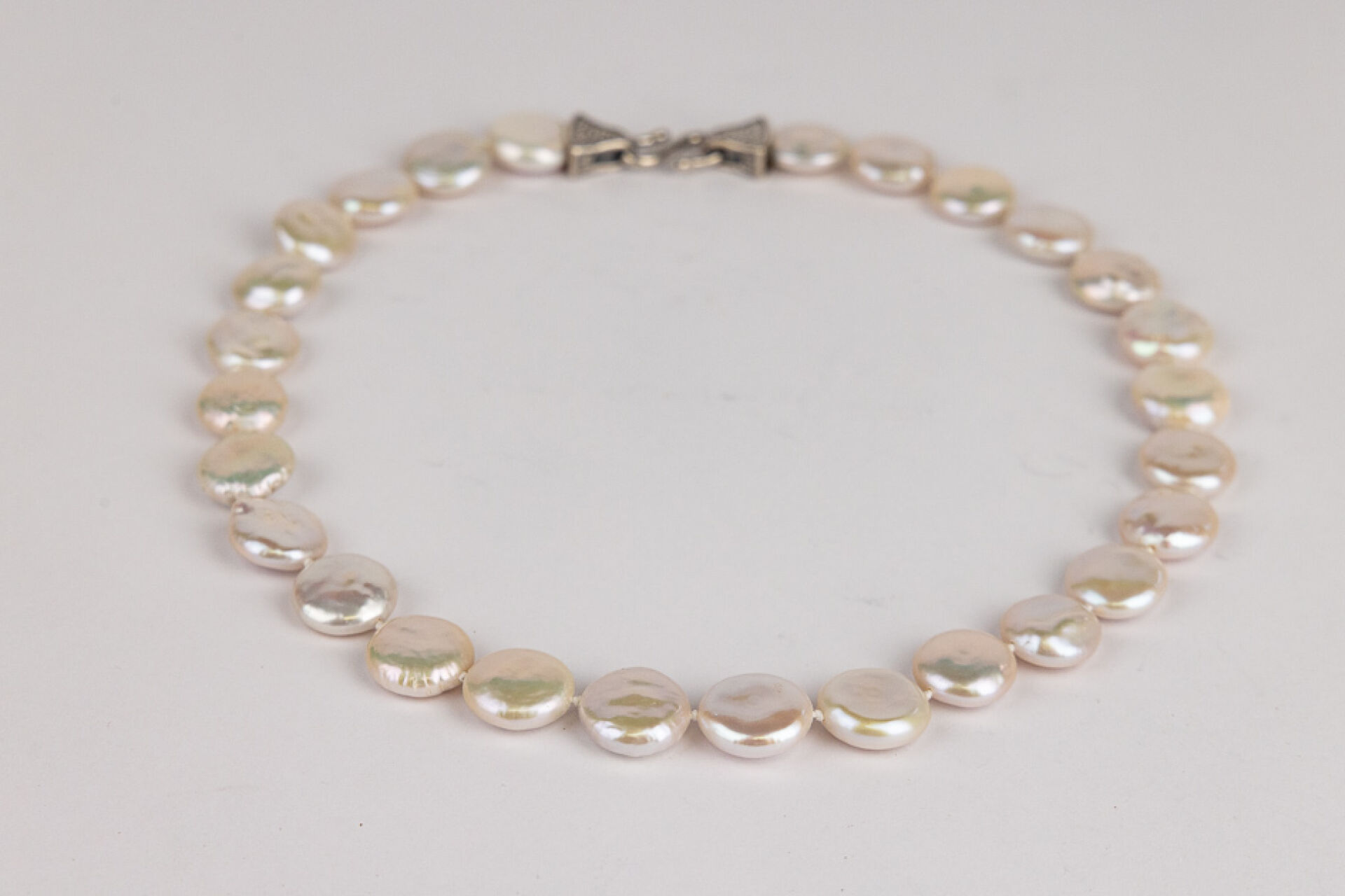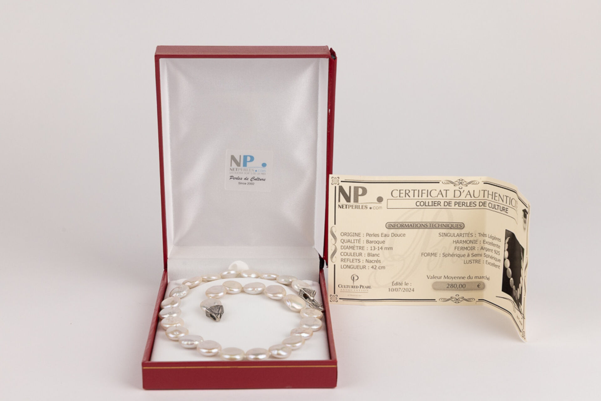 Collier de 27 perles d'eau douce baroque, fermoir en argent 925 millièmes. Poids brut : 44,16 gr - Long. : 42 cm