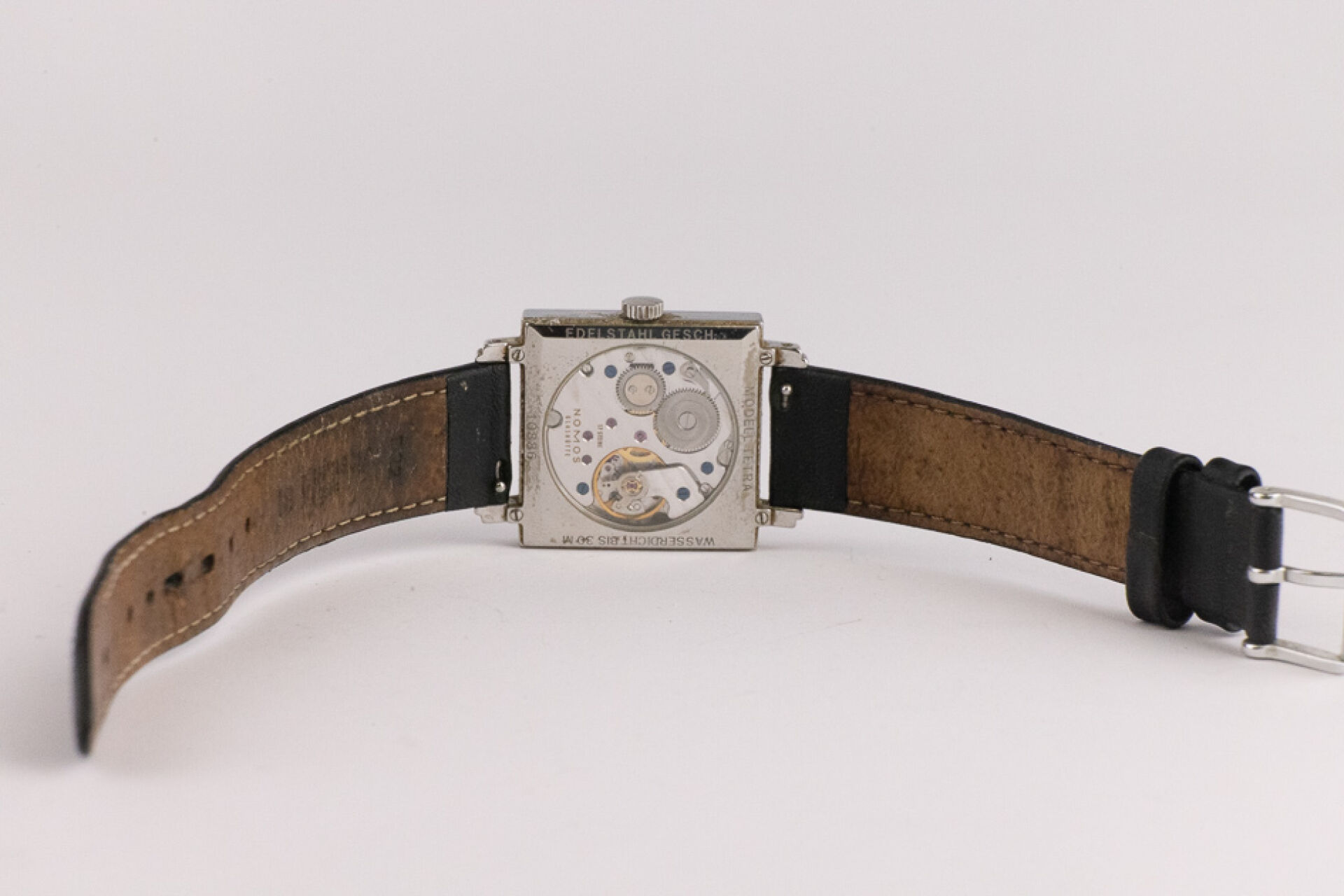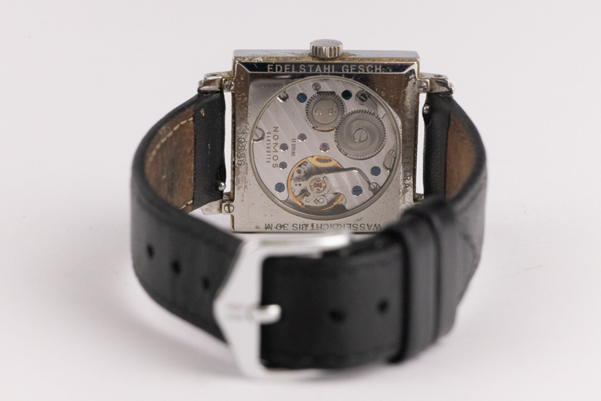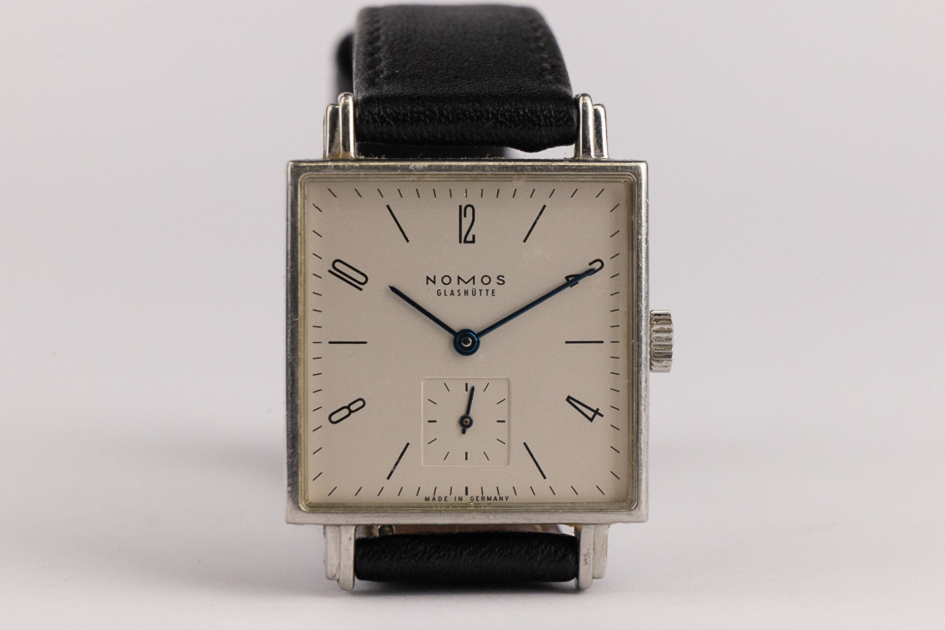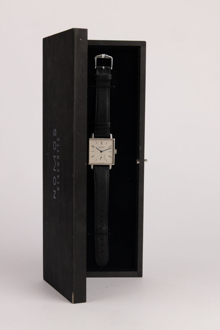 NOMOS Glashütte - NOMOS TETRA 29. Mouvement automatique manuel DUW 4001 à 21600 alt/h doté d'une réserve de marche de 53H. Boîtier acier de 29,5mm, bracelet cuir, verre saphir, étanchéité 3 ATM. Conditions de vente spécifiques : Veuillez noter que toutes les montres sont vendues en l'état. Aucune garantie n'est faite sur l'état de marche, une révision est donc conseillée. Certaines montres ont été ouvertes pour identifier le type et la qualité du mouvement, y compris les montres résistantes à l'eau, il est donc conseillé à l'acheteur de consulter un horloger pour revoir l'étanchéité de la montre.