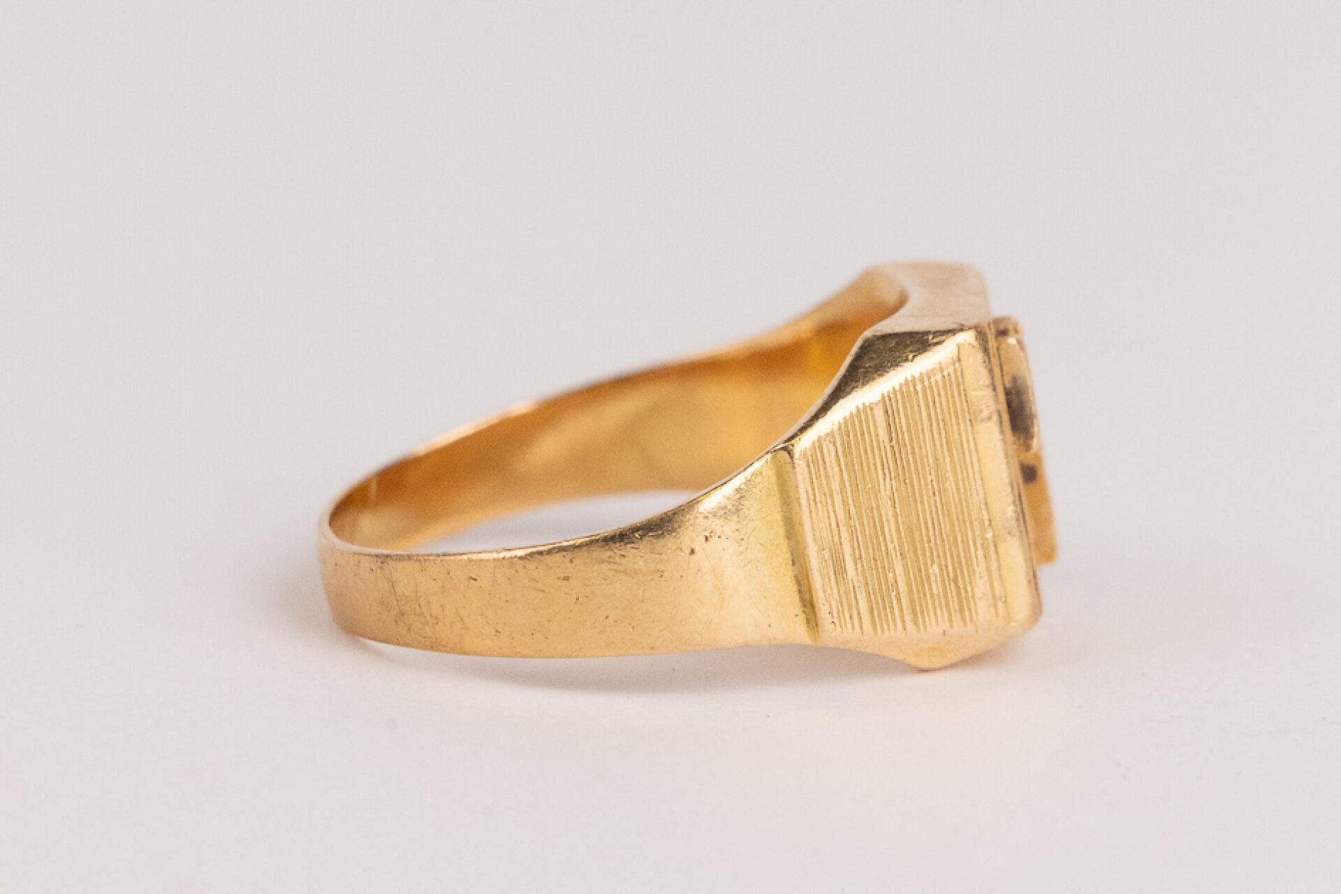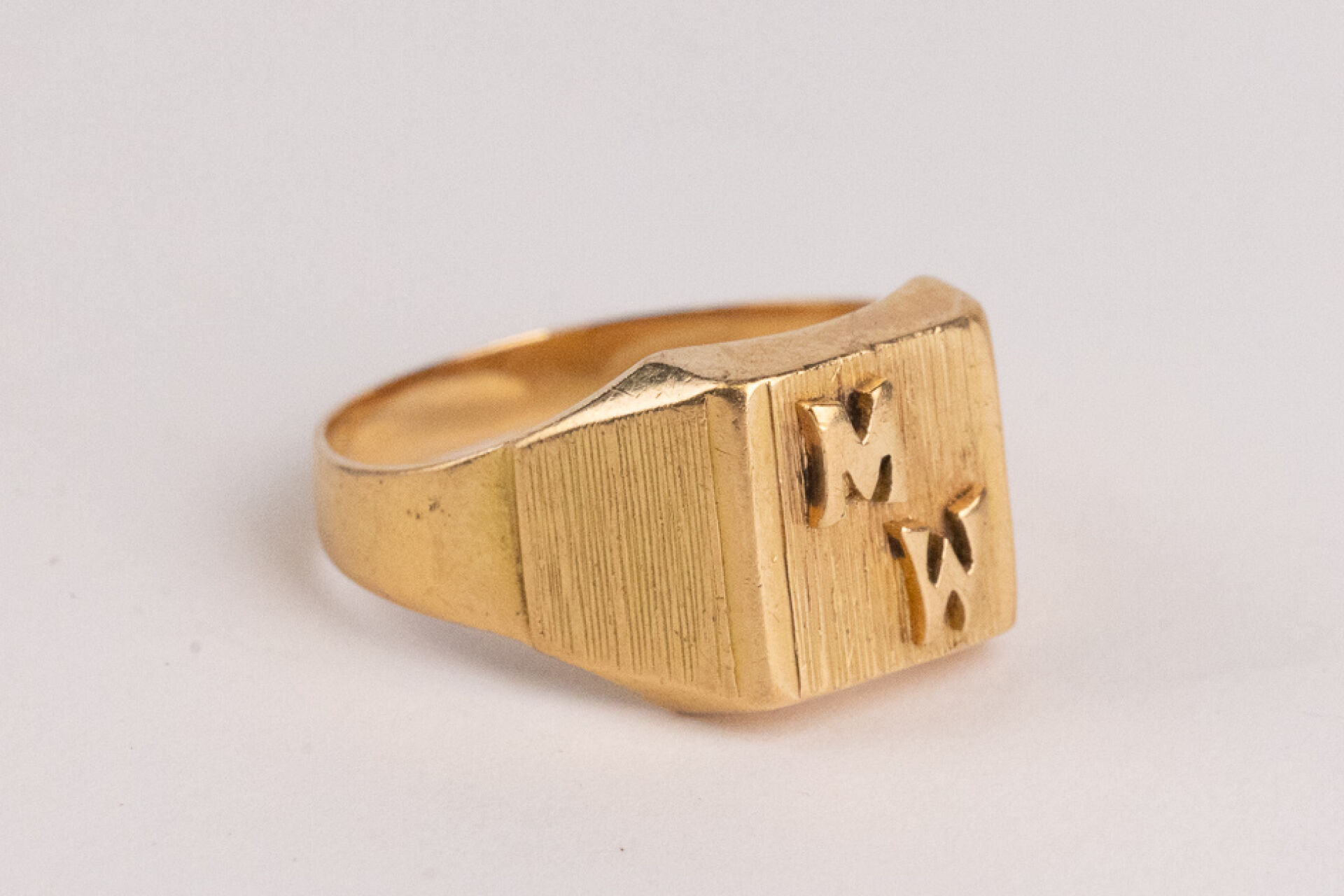 Initialière en or rose 18k (750 millièmes) aux initiales M W. Poids : 5.22 gr - Tour de doigt : 59