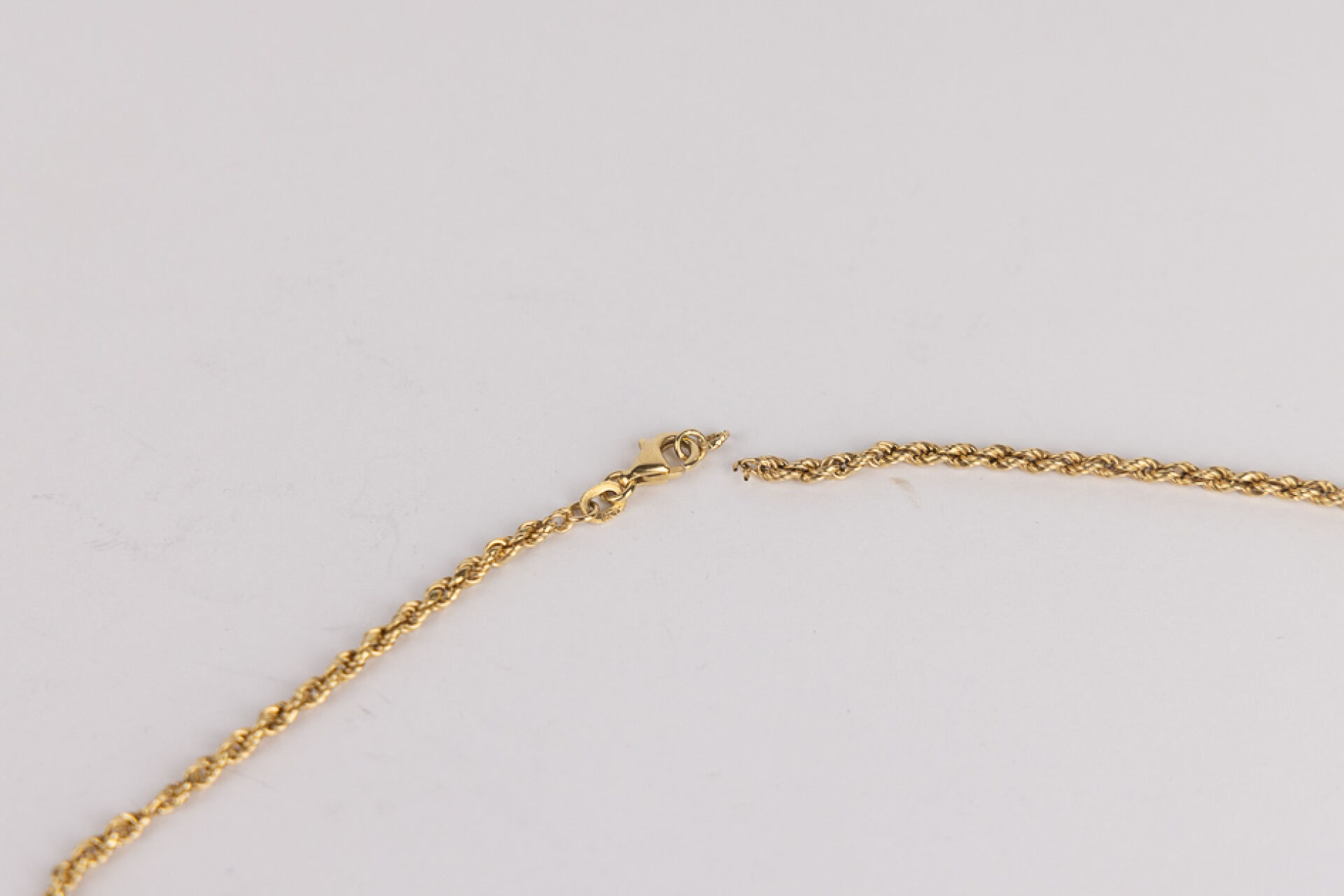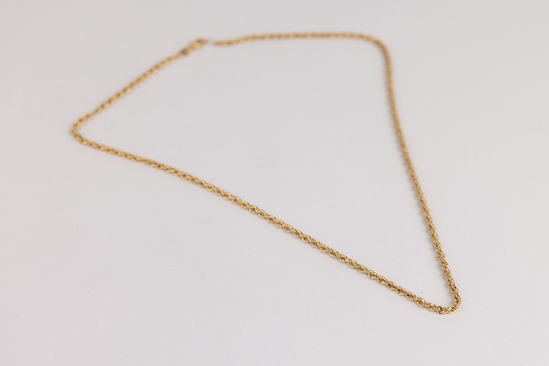 Chaine torsadée en or jaune 18k (750 millièmes). Poids : 5,78 - Long. : 47,5 cm (anneau du fermoir à changer)