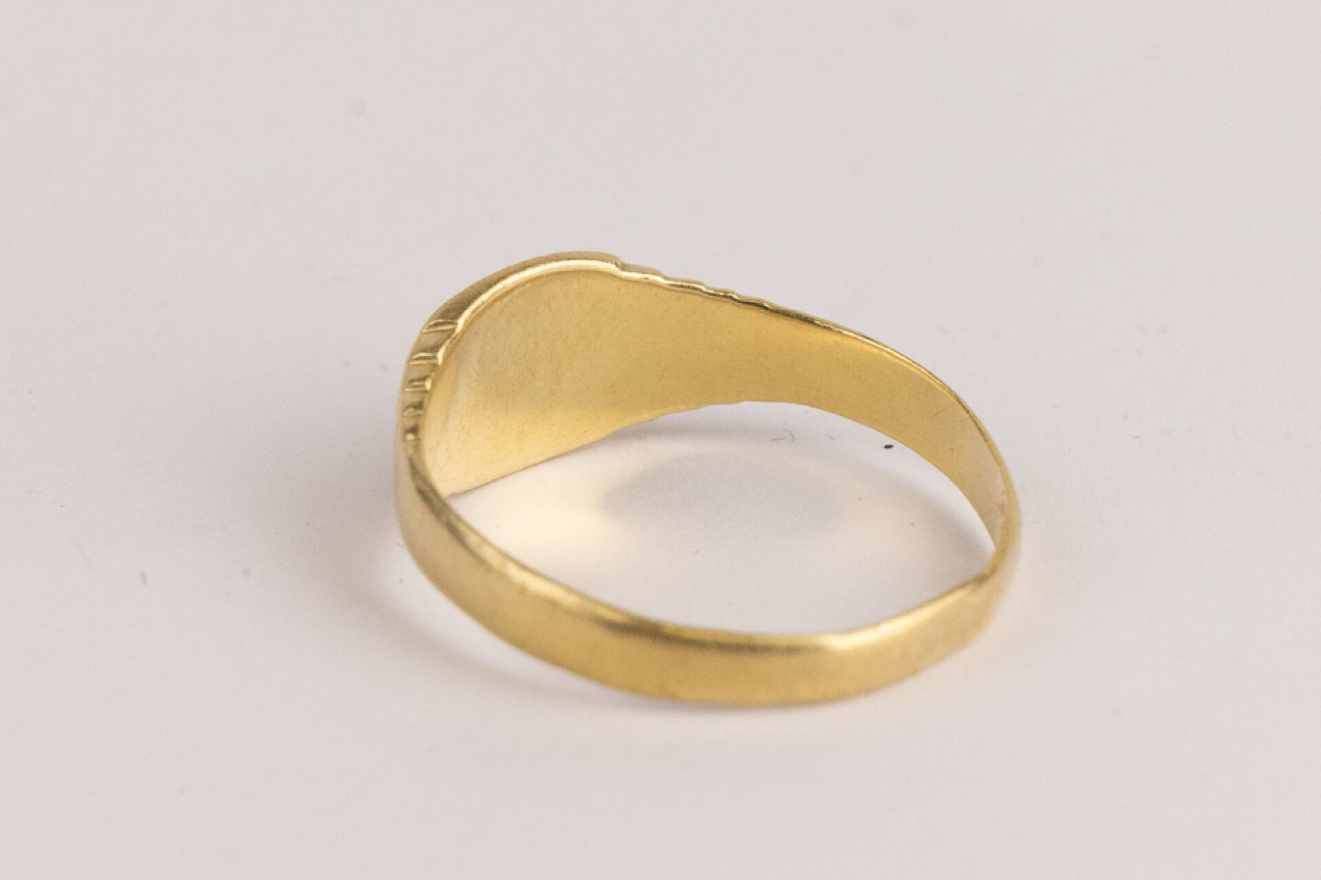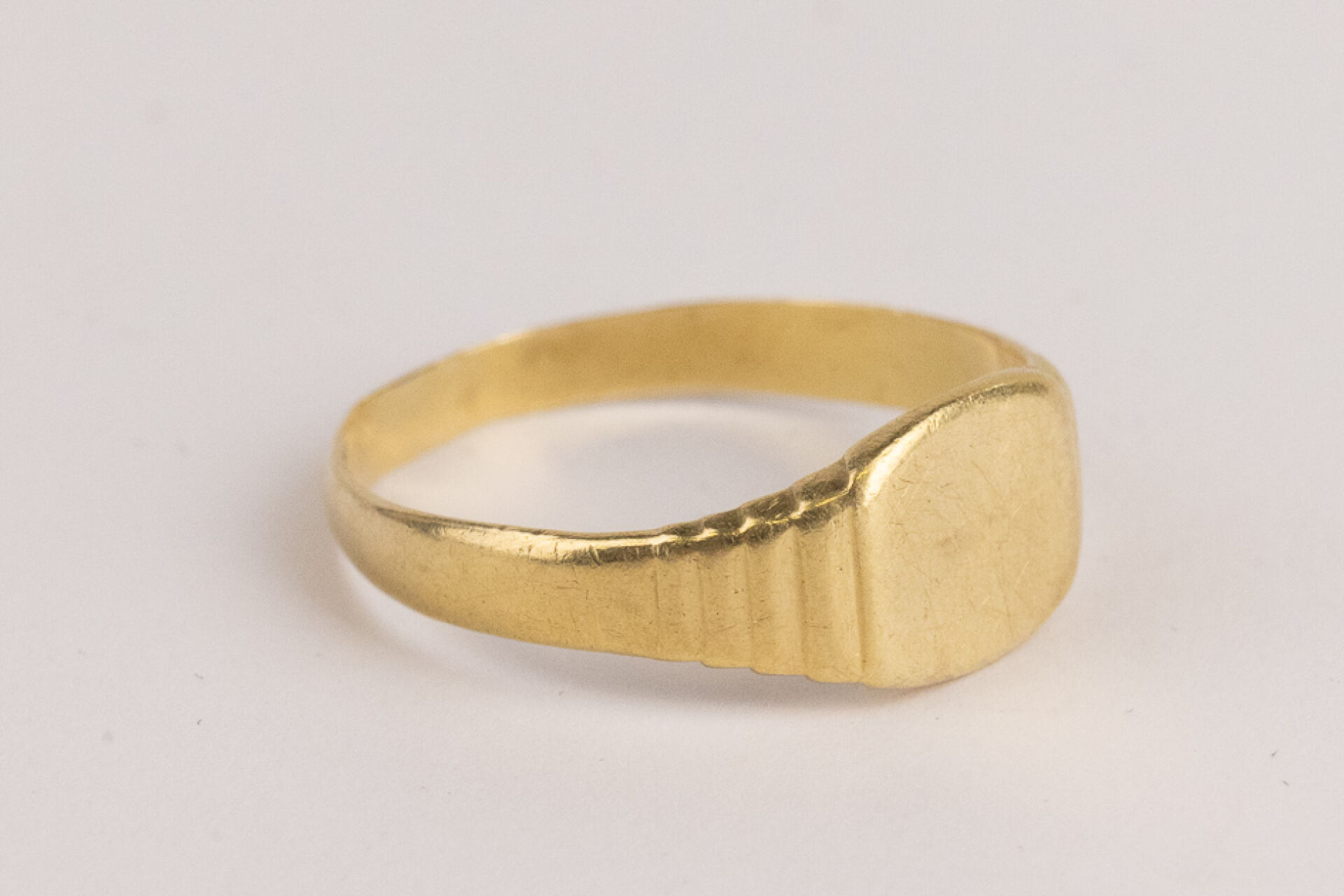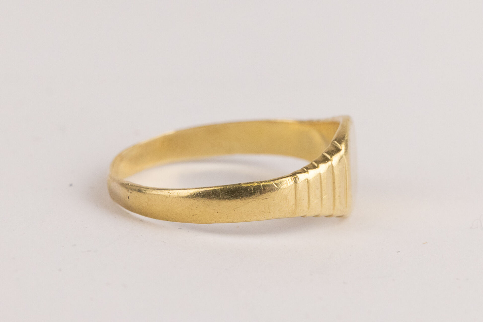 Chevalière en or jaune 18k (750 millièmes), plateau rectangulaire. Poids : 4,28 gr - Tour de doigt 61