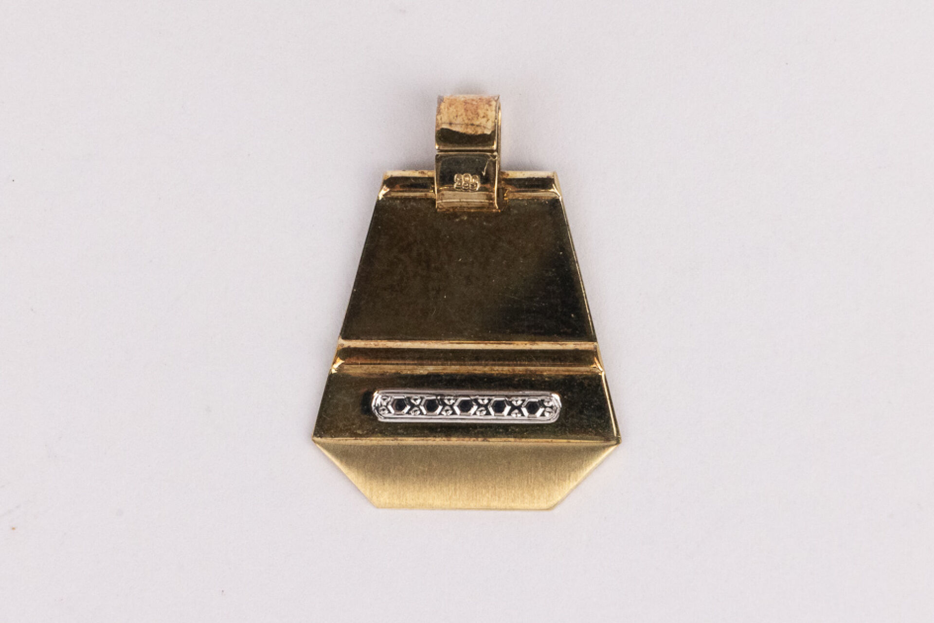Pendentif de forme géométrique en or jaune 14k (585 millièmes). Poids brut : 2,79 gr - Haut. (sans la bélière) : 2 cm