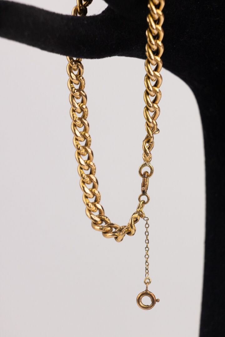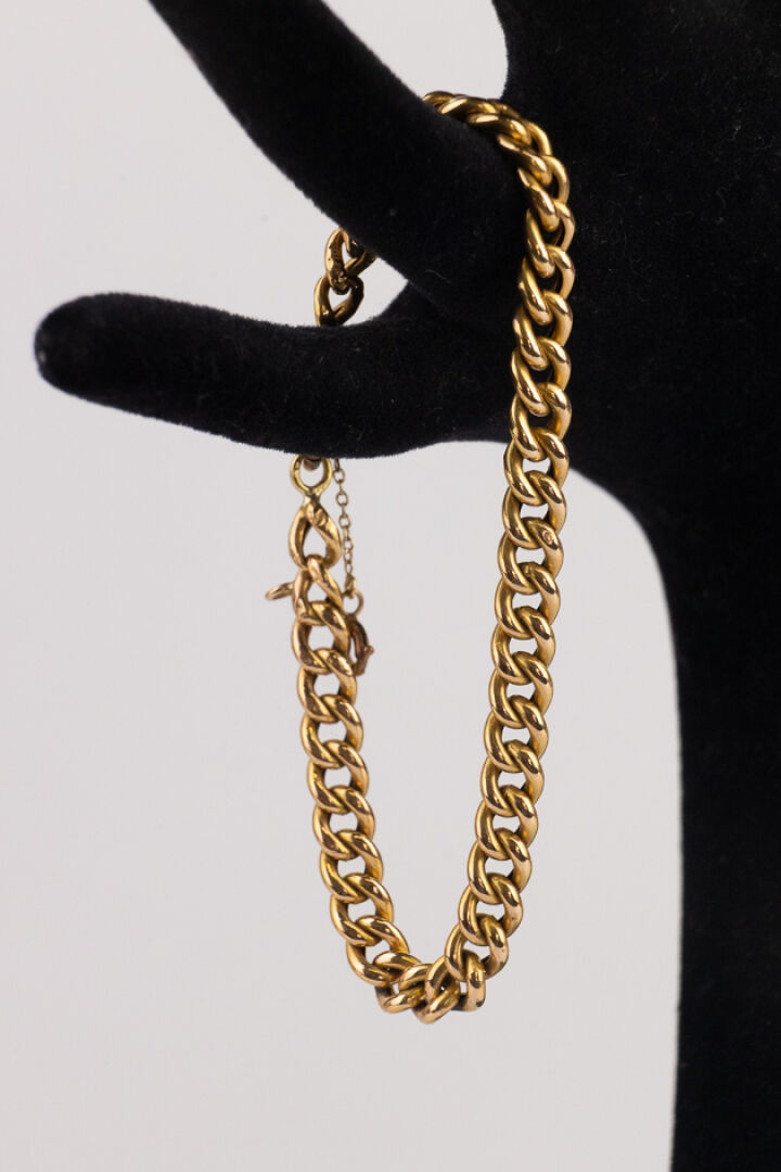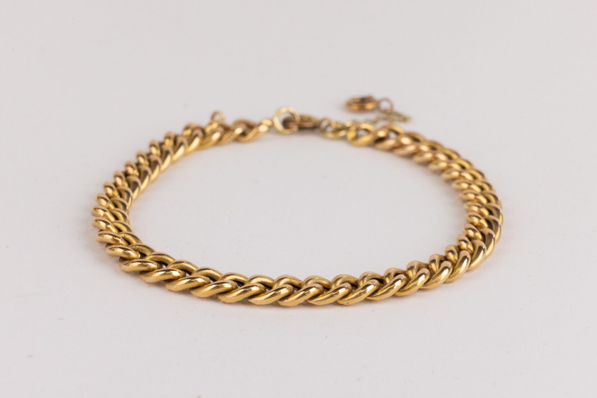 Bracelet en or jaune 18k (750 millièmes), maille gourmette, fermoir à chaînette de sécurité. Long. : 17.5 cm - Poids : 5.13 gr